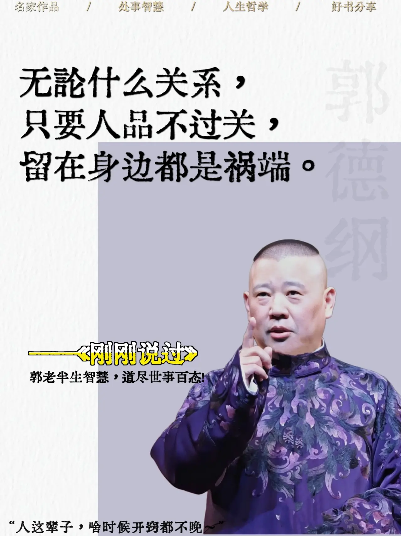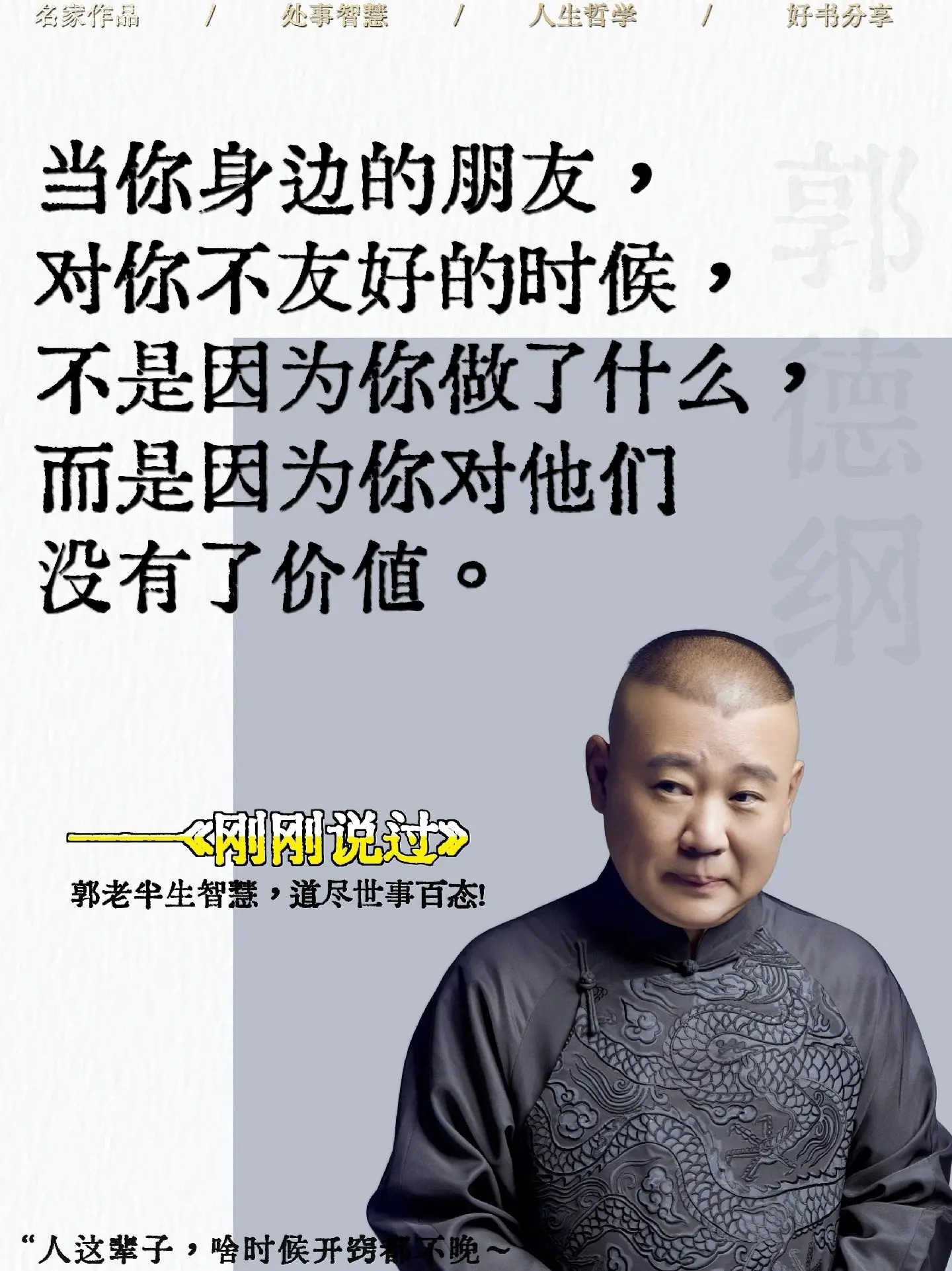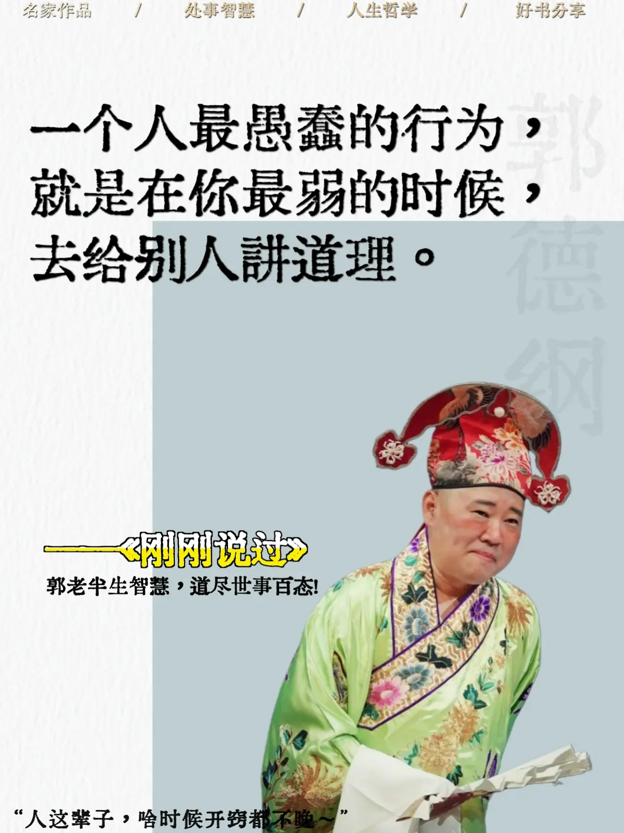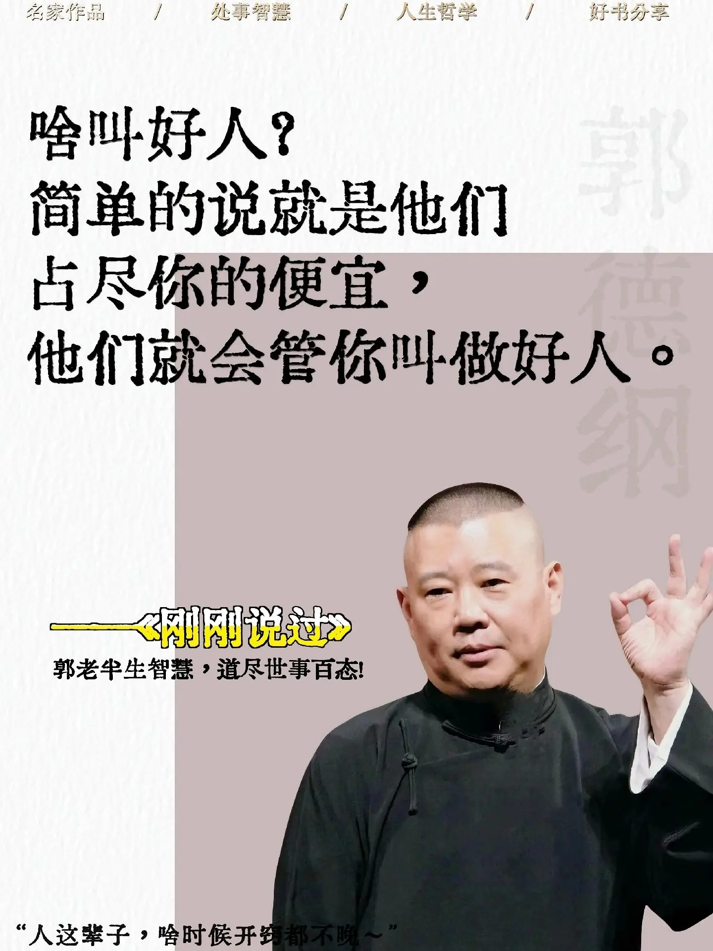 被郭德纲新书狠狠治愈了!!郭老新书太太通透了,人生不过三万多天,难为谁...