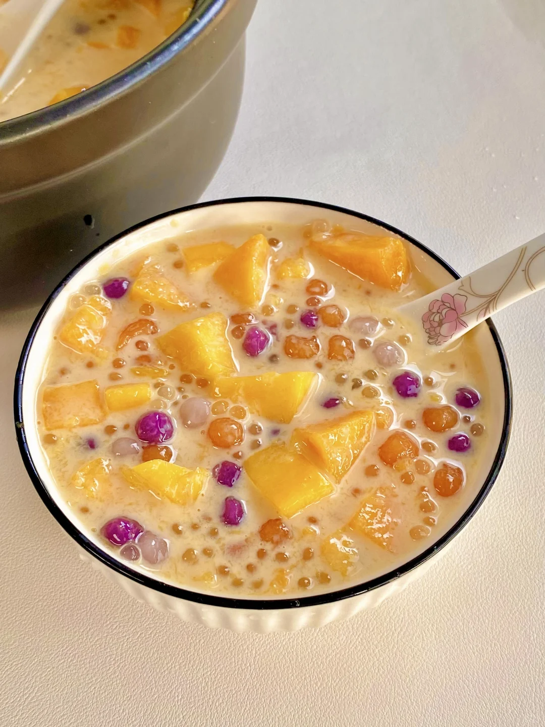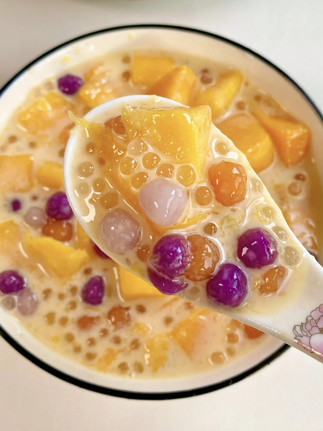 糯叽叽的小圆子搭配香甜的芒果和Q弹的西米,加上浓郁的椰奶!一口下去真的是赞爆了!![色色R]