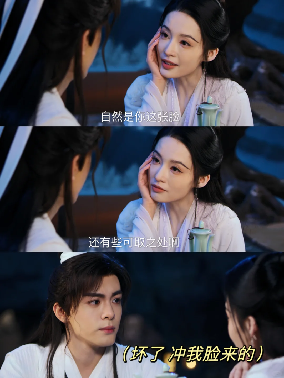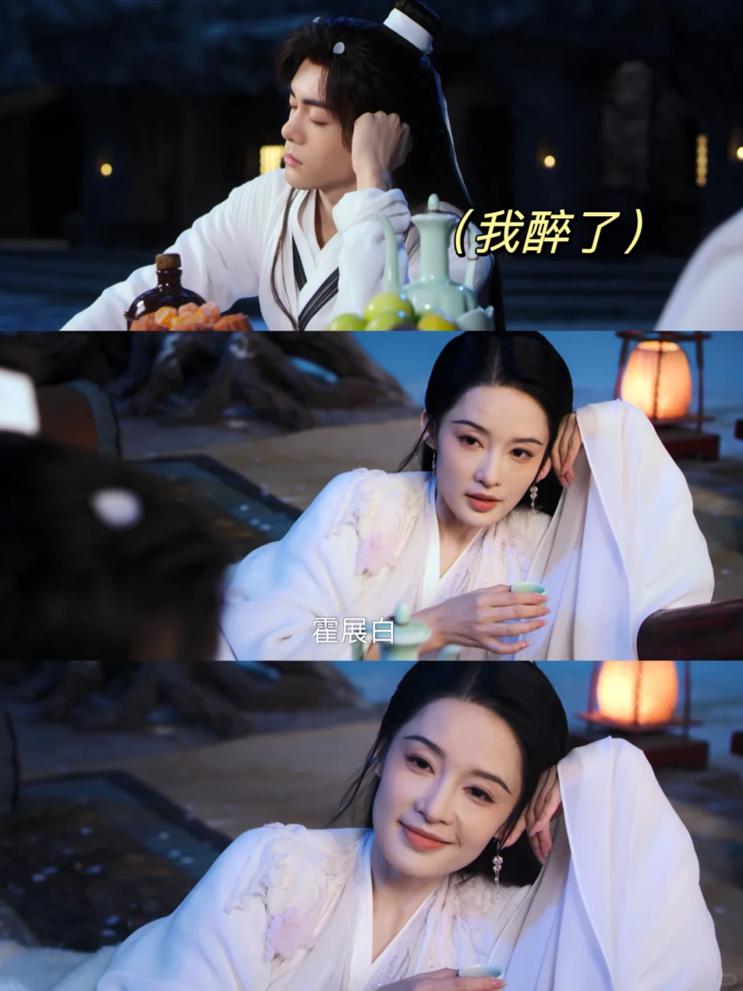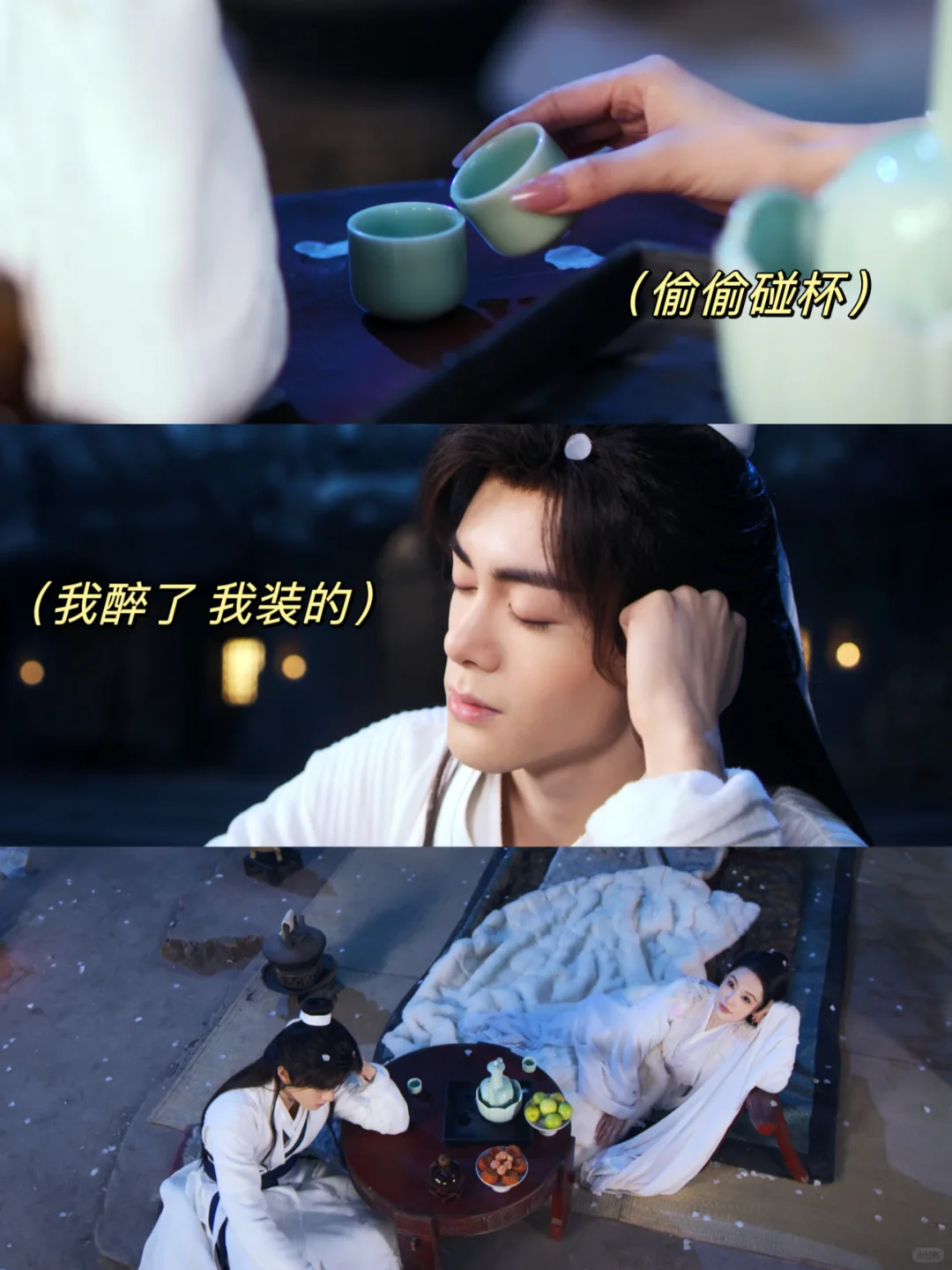 紫夜看他醉了偷偷拿起酒杯跟他碰杯,霍展白偷笑嘴角上扬😏漫天落下的花瓣,皎洁的月光,两个人暗生情愫🥹