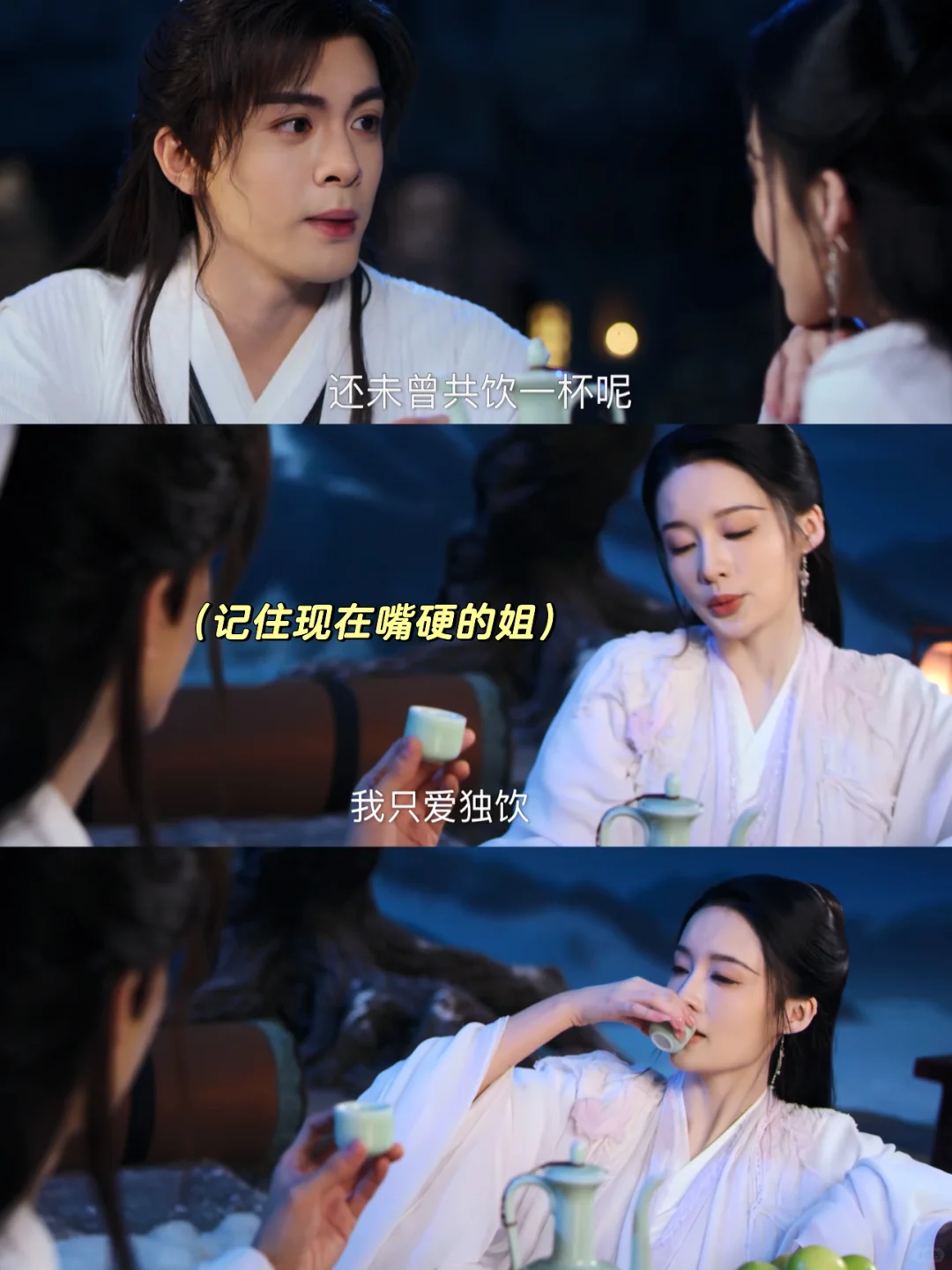 霍展白邀薛紫夜共饮一杯,但紫夜却嘴硬说自己只爱独饮不肯与他碰杯[doge]霍七大脑飞速运转,鬼点子来了,直接手撑着头装醉🥹