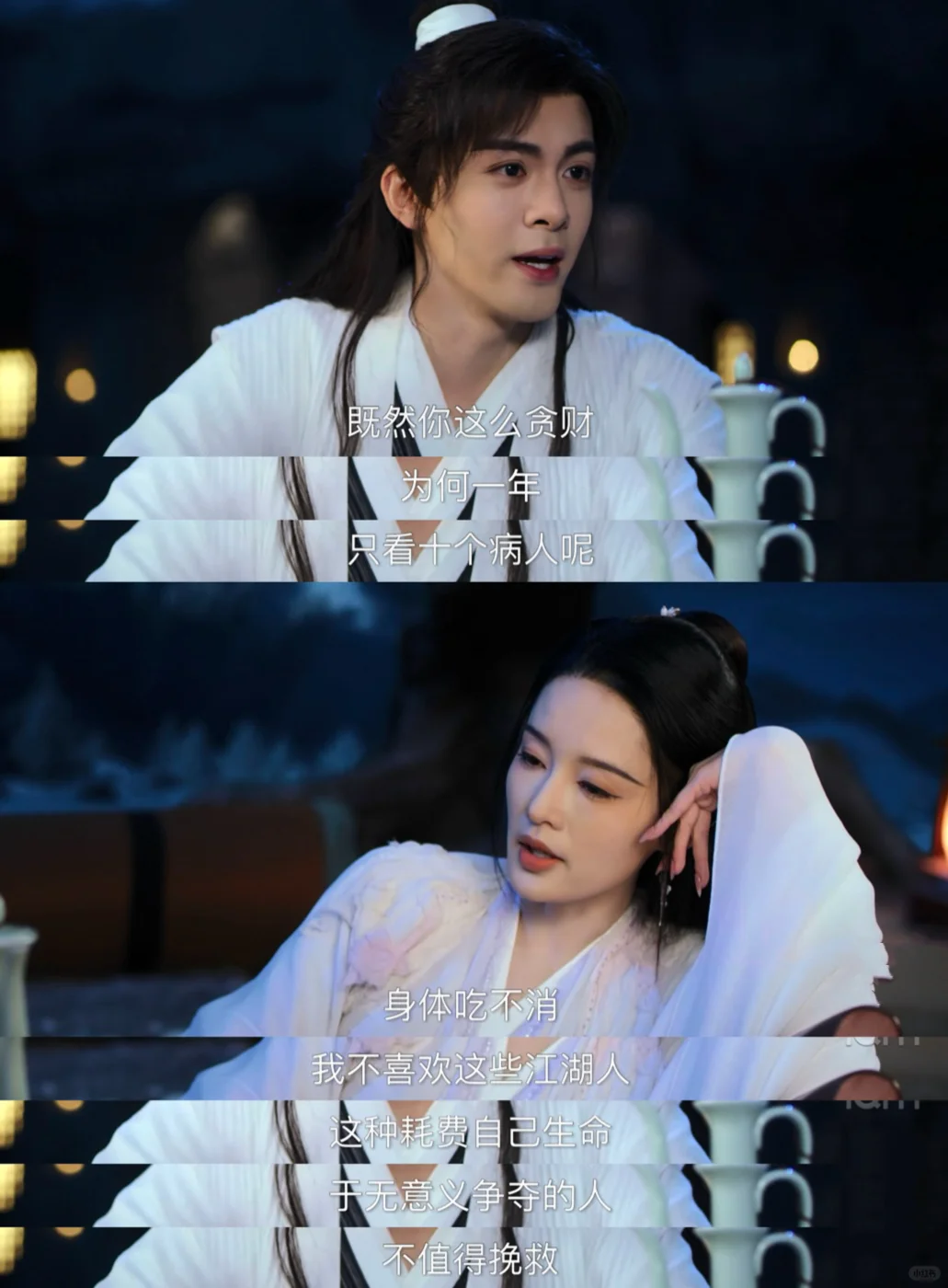 霍展白问紫夜为什么一年只收十个病人,紫夜说自己身体吃不消,也不喜欢江湖的争夺。霍展白暗爽,自己也是江湖人,但她却愿意三番五次的救自己,自己在她心里肯定是与众不同的[偷笑R]