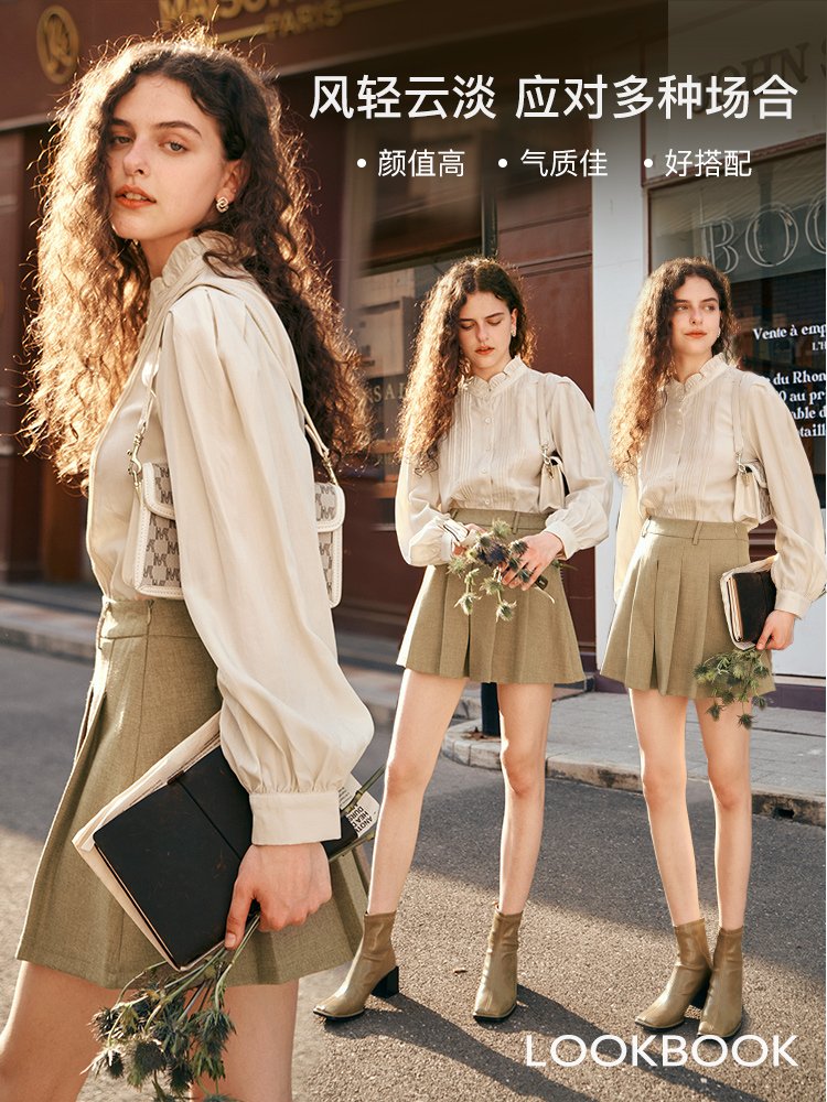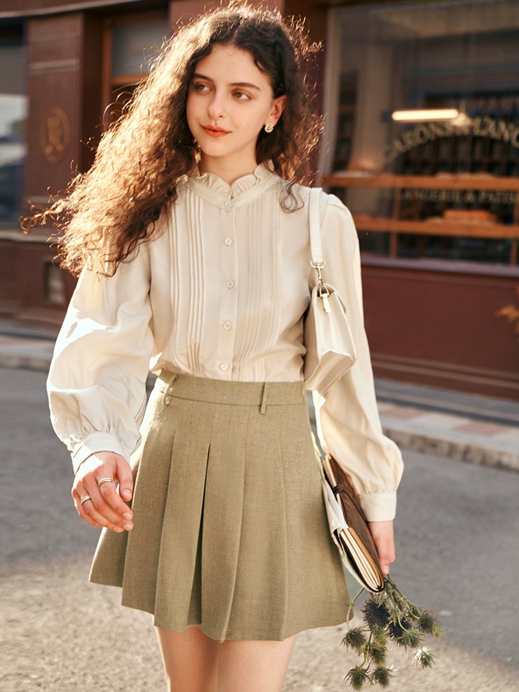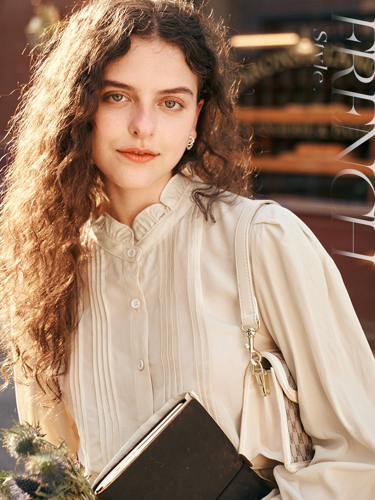 优雅仪式!法式木耳边立领泡泡袖衬衣