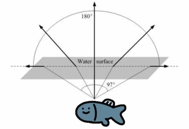 这个视觉效果类似于鱼在水下观察水上的环境,当鱼靠近水面就能获得接近180° 的视角。如果稍微出来点水面,视角就更大些。