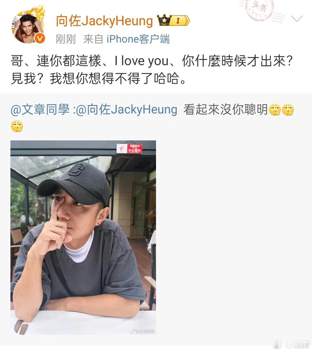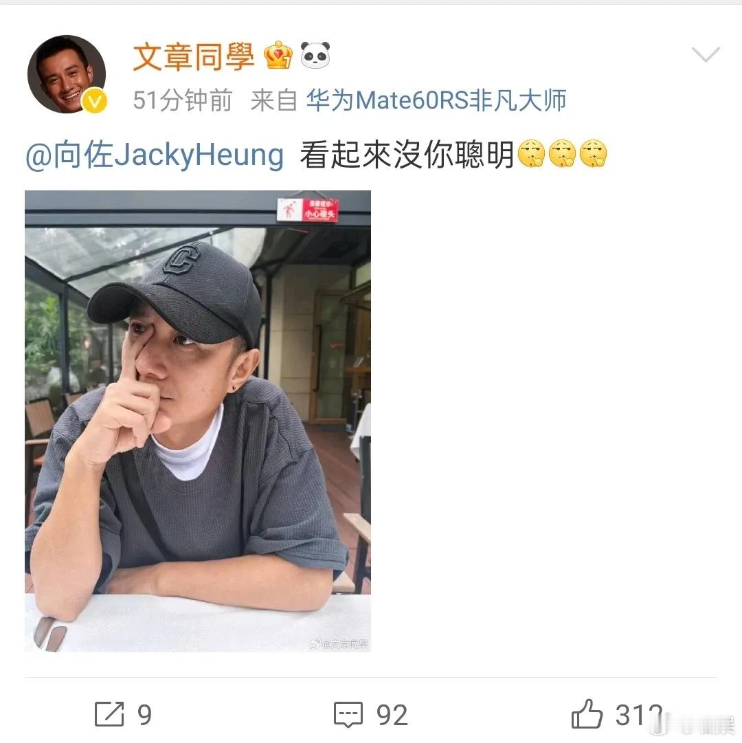 文章罕见发微博,没想到是在模仿向佐,还喊话向佐:看起来没你聪明[允悲]