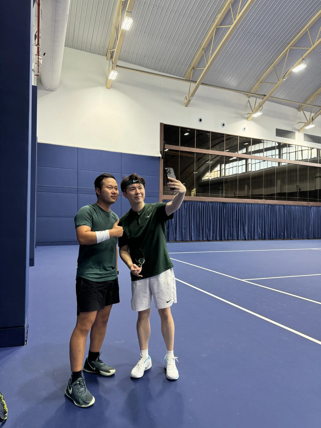 眼看着场地时间马上要到点 强行把比赛掰成了大比分平局 不过还是心存感激 4.0大佬们陪我练一上午发球✌️✌️✌️