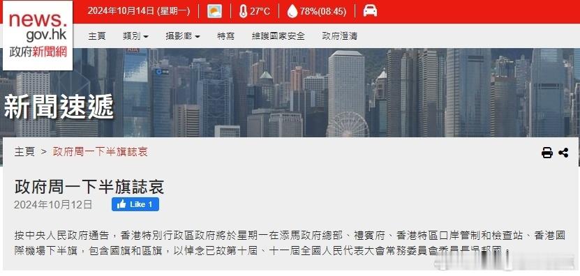 [蜡烛][蜡烛][蜡烛]【#天安门下半旗悼念吴邦国同志#】10月14日,为悼念吴邦国同志,首都天安门下半旗志哀。此外,首都新华门、人民大会堂、外交部,各省、自治区、直辖市党委和政府所在地,香港特别行政区、澳门特别行政区,各边境口岸,对外海空港口,中国驻外使领馆也会下半旗志哀。#为悼念吴邦国同志天安门下半旗#