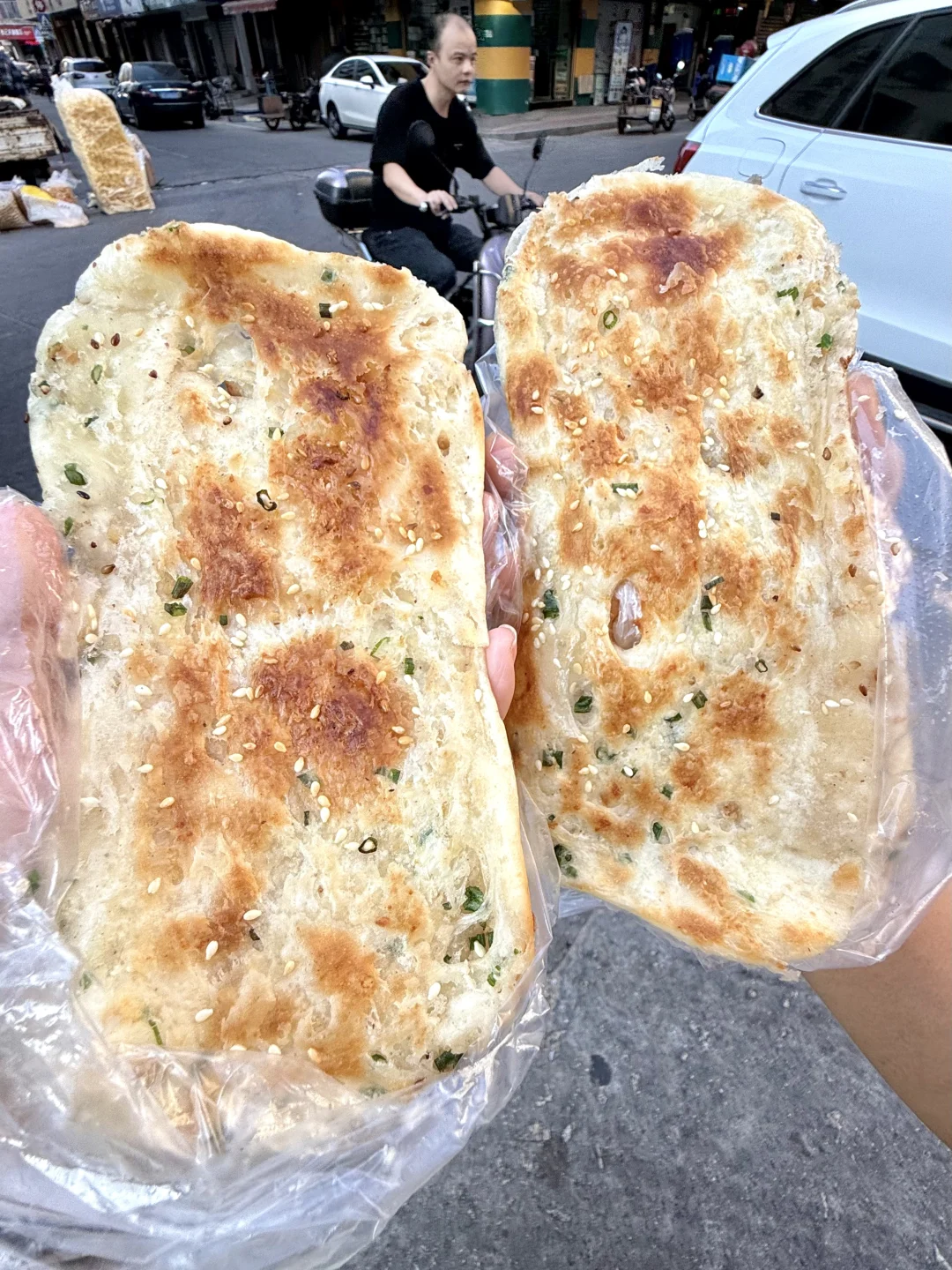又香又脆!没吃过的都给我去吃!!! 什么淮南烧饼比我巴掌还大。。可以加蒜蓉和辣椒酱!什么都不加也好吃嘎嘎香!每次来ss都要打包几个带走🤯 不是广不是广!是广我吃大便!