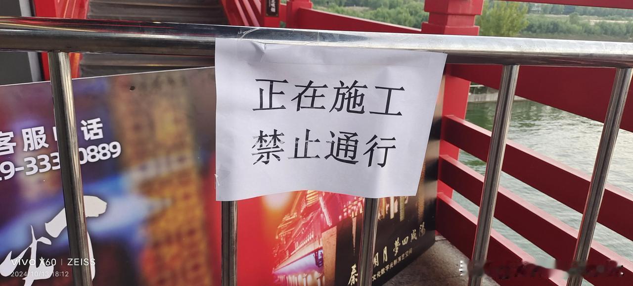 咸阳古渡廊桥二层到三层西面梯口,围栏了,原因不详。游人可由东面通行。