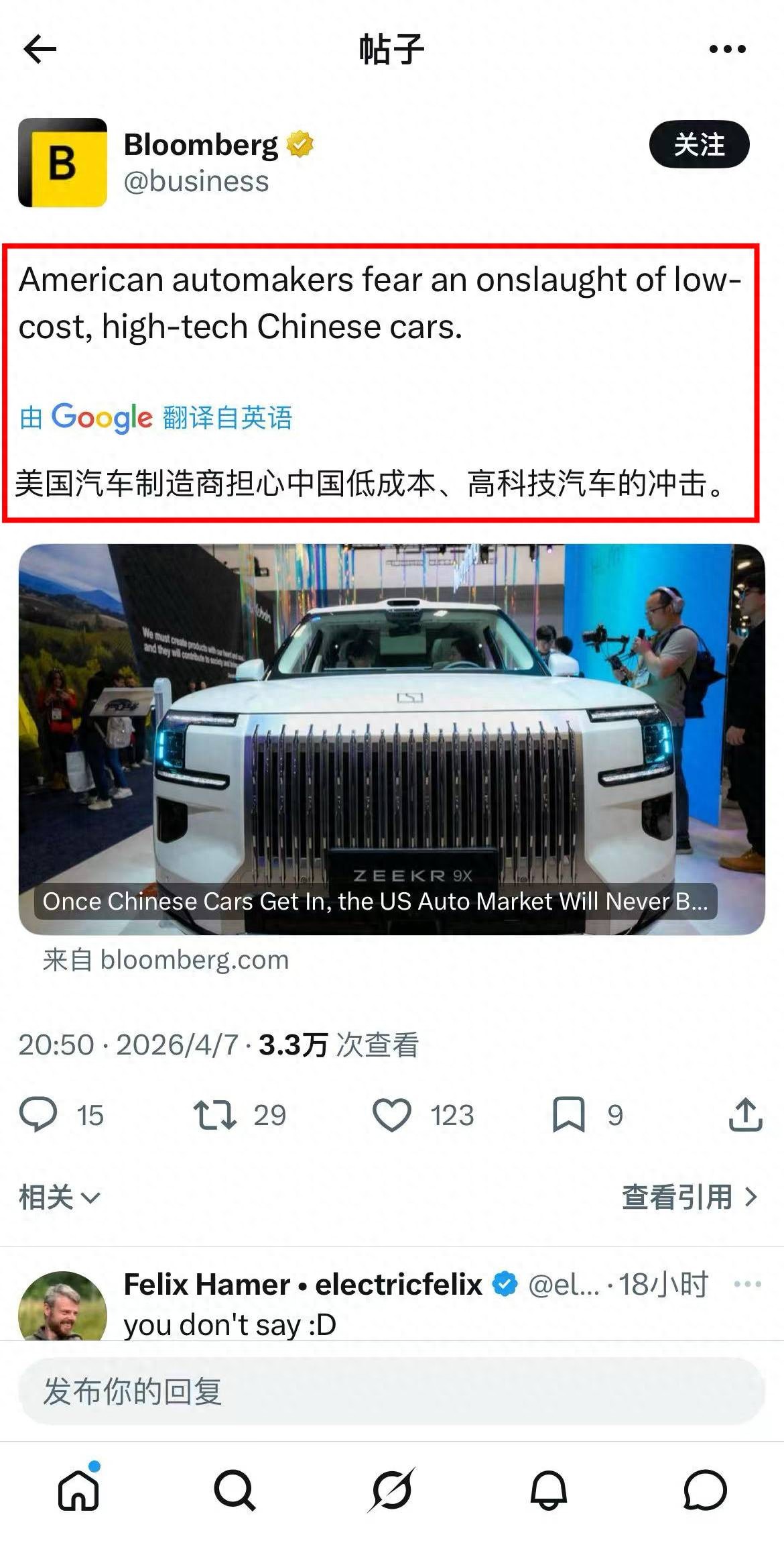 面对行业变革,美国传统车企正加速电动化转型,但整体进度未达预期。彭博社报道认为,中国车企依托产业链与技术积累,若进入美国市场,将为当地行业带来新的竞争格局。