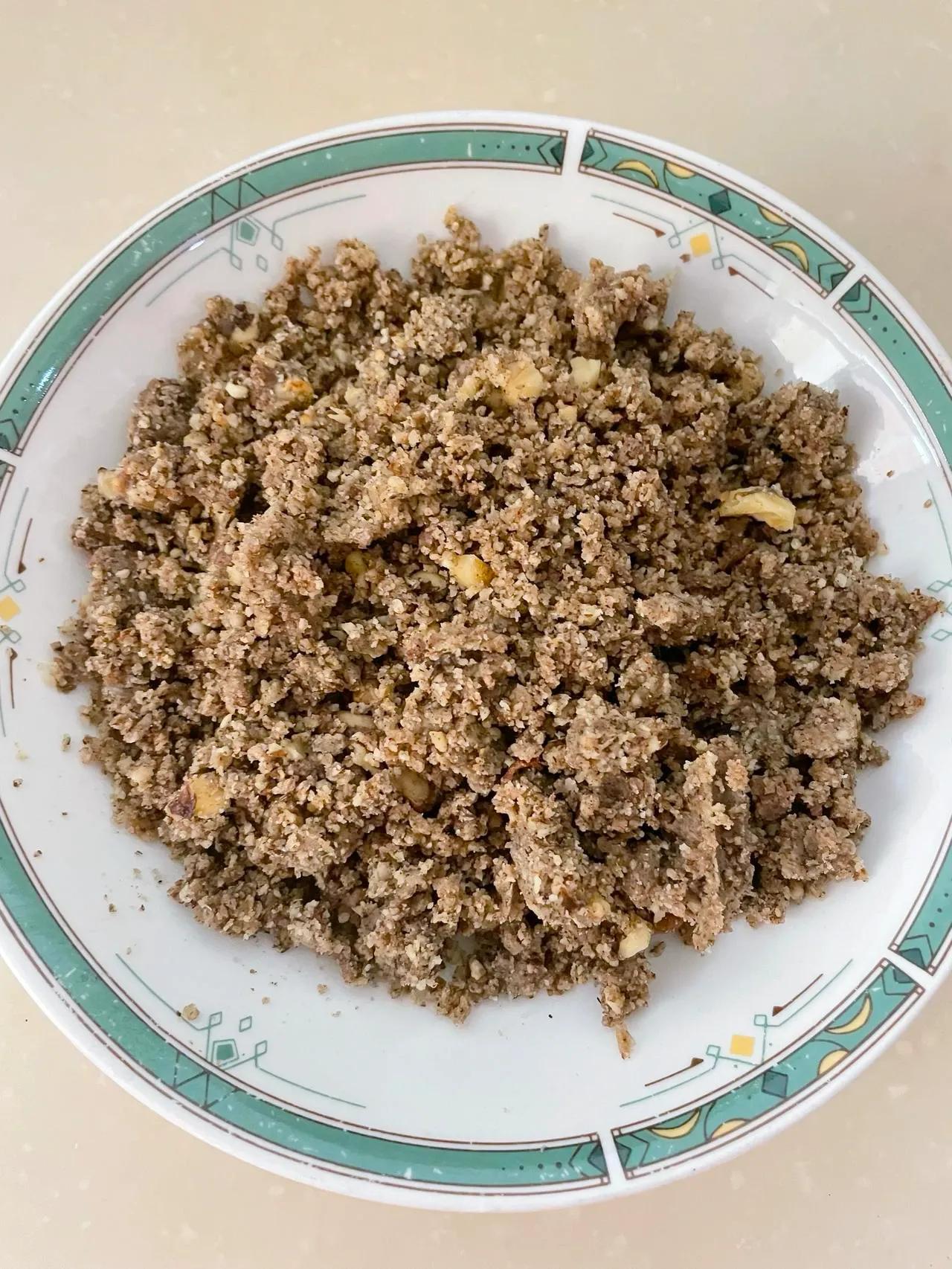 家里有些干辣淑粉,准备做个辣淑油。 配料:核桃、芝麻、香油、鸡棕油、花淑油。 第一步:核桃、芝麻炒黄,其中核桃打碎。 第二步:香油放锅里烧到起泡关火。 第三步:看着锅里油冷到1分半钟左右,把辣淑面倒进去会发出吱吱声晌,把它快速搅拌均匀。 第四步:依次加入核桃、芝麻、少许花淑油再次搅拌,此刻会闻到香味,辣淑油就基本做好了。 第五步:放冷装瓶,最后把鸡棕油倒进去,看它完全淹没辣淑才不会坏,只要不遇到水可以吃很长时间。
