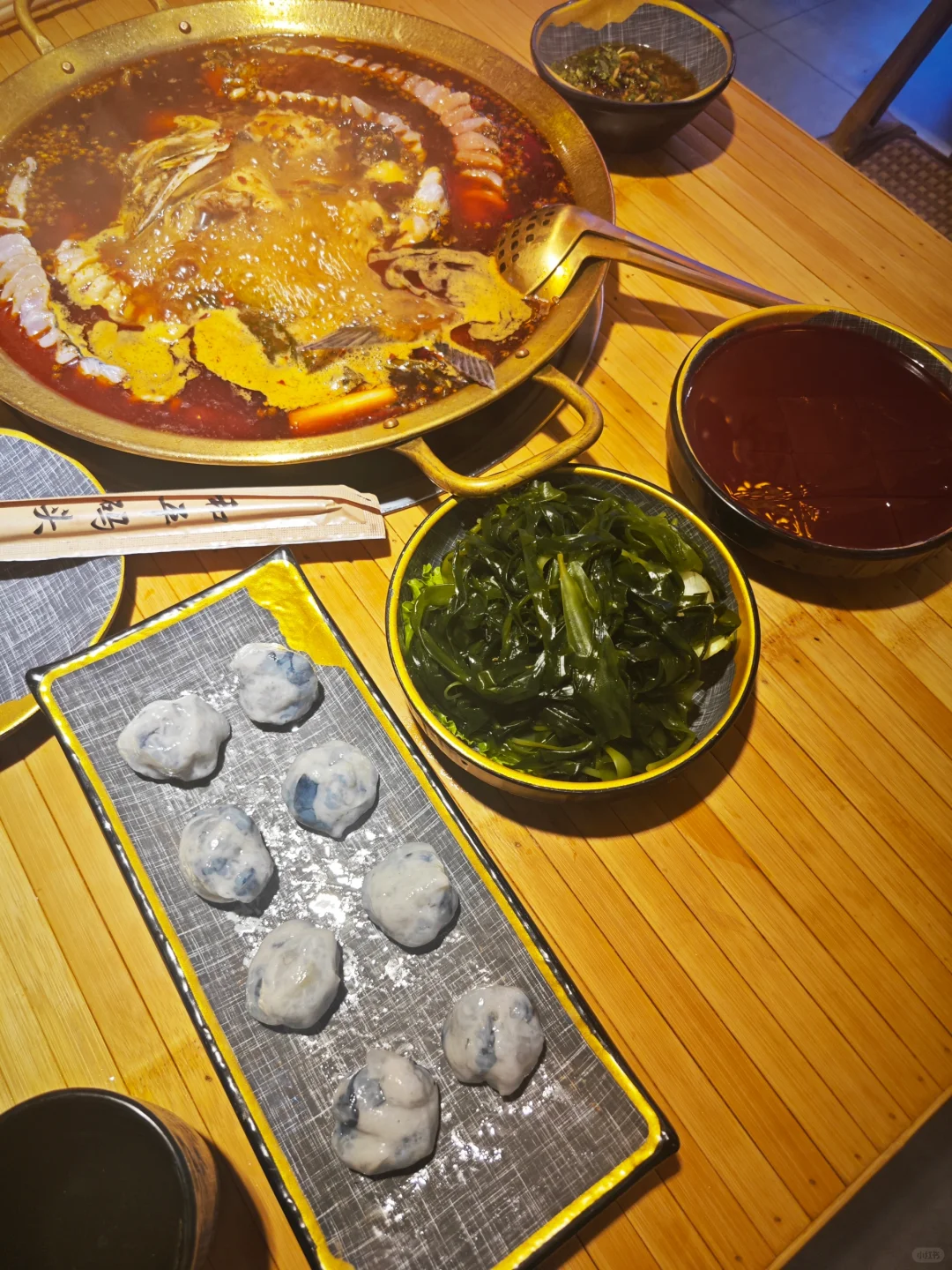 🌟主打现杀活鱼,每一条都是新鲜游进嘴里的感觉!🐟 吃起来肉质紧实又鲜美,简直不要太爽!😋 黑虎虾虾滑也是必点,颗颗虾肉饱满分明,Q弹到不行!🍤