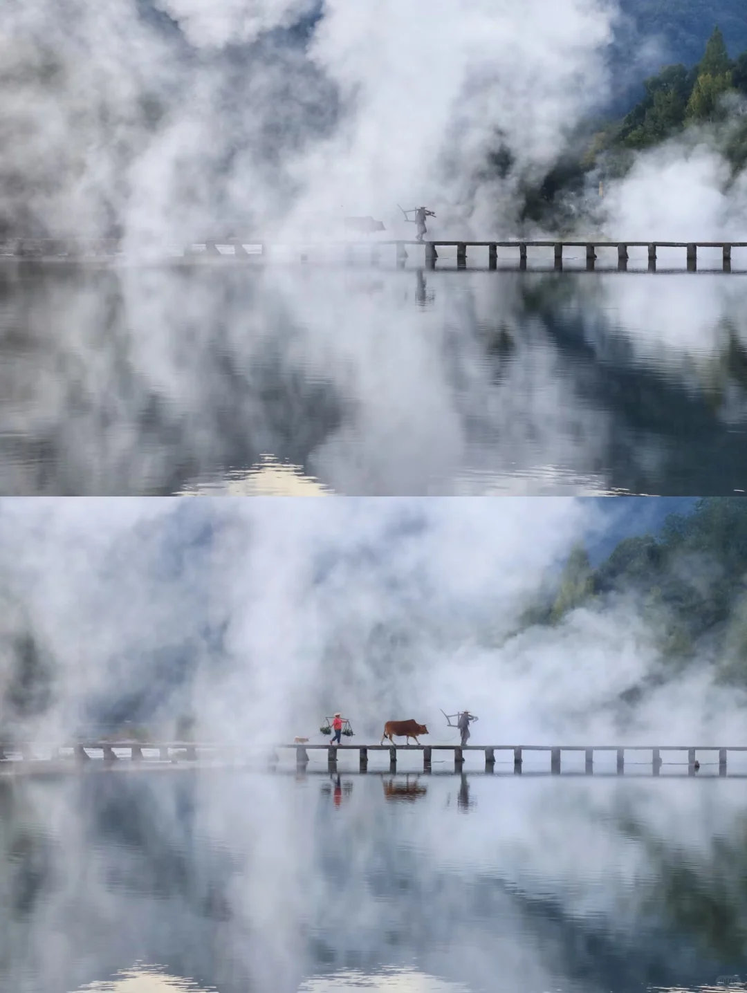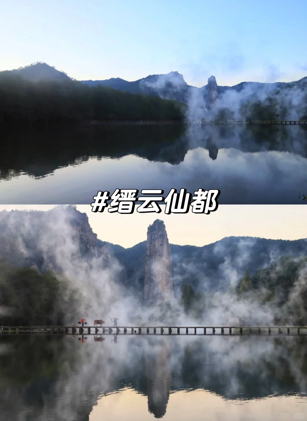 [赞R]最推荐朱潭山,经典仙侠剧拍摄机位在这里。建议住附近民宿,晚上看星星很适合逃离城市生活。清晨看农夫牵牛过桥(基本上早上都会有摄影群雇佣),看看日出玩玩溪流。