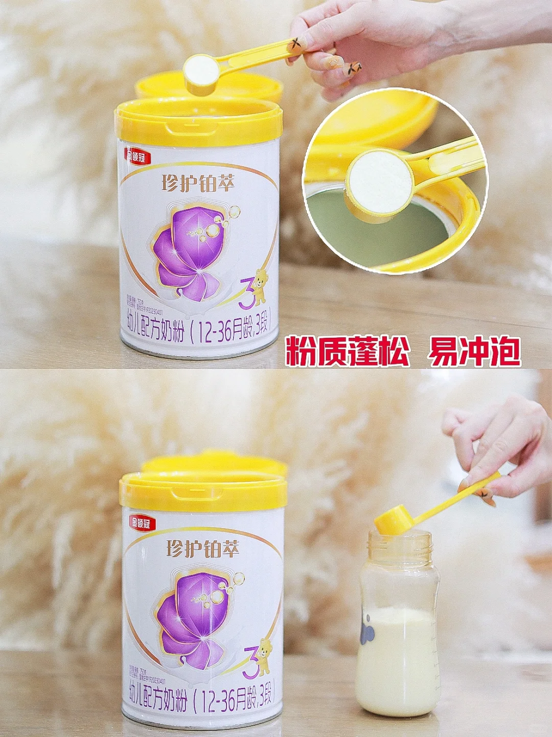 ✅好的奶粉势必拥有优质奶源,珍护铂萃甄选【100%鲜活A2生牛乳】,粉质蓬松,特别好冲泡,口味清淡,还有淡淡奶香~我家宝宝超爱喝🥛