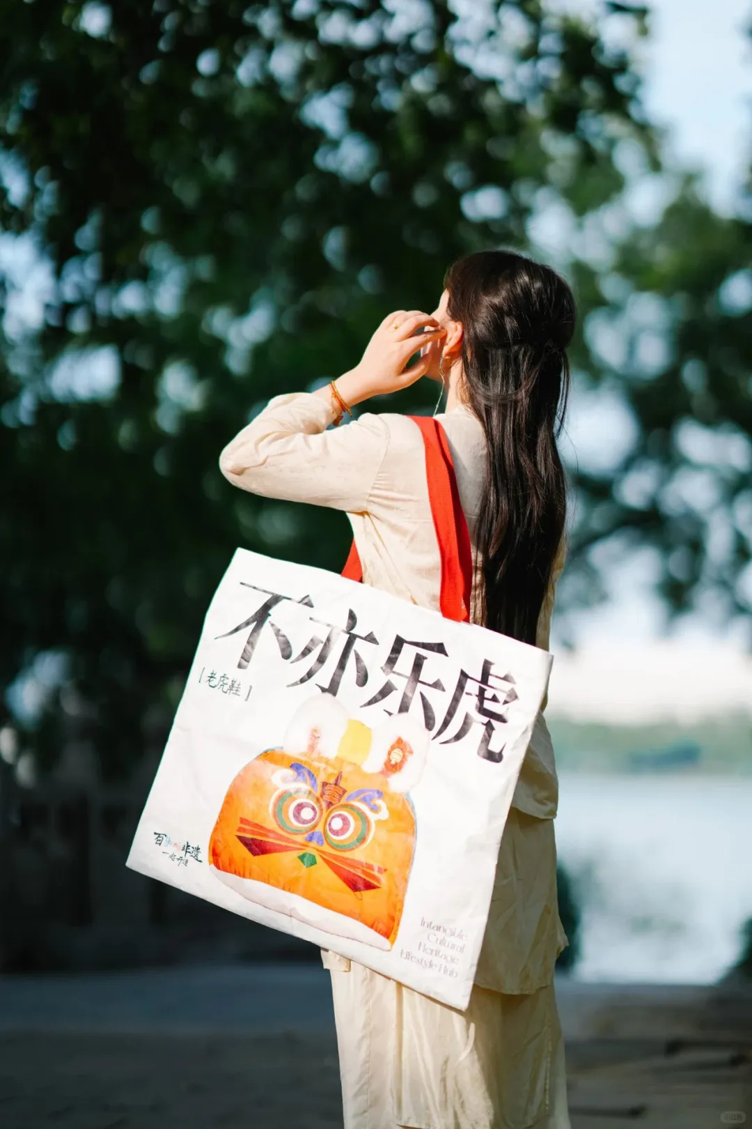 超大容量又实用的购物袋来啦!“雀实不错”的盘扣设计、“广结扇缘”的檀香扇图案、“不亦乐虎”的老虎鞋印花,每一款都蕴含着独特的文化元素,背着它,你绝对是人群中最靓的仔👜。