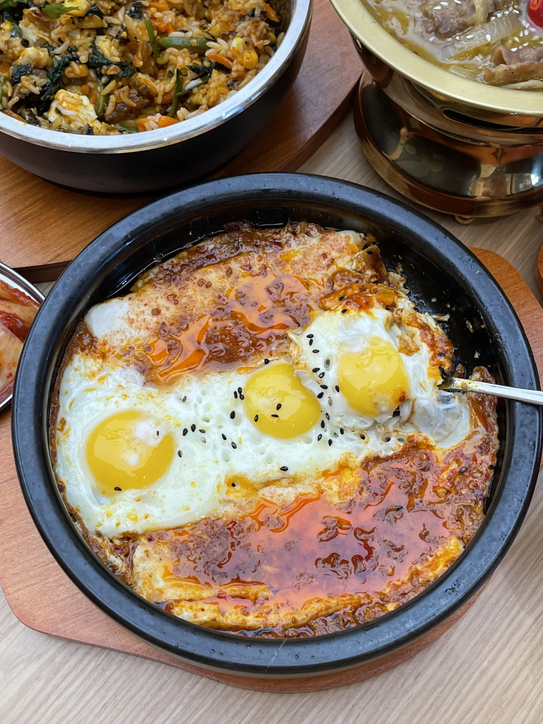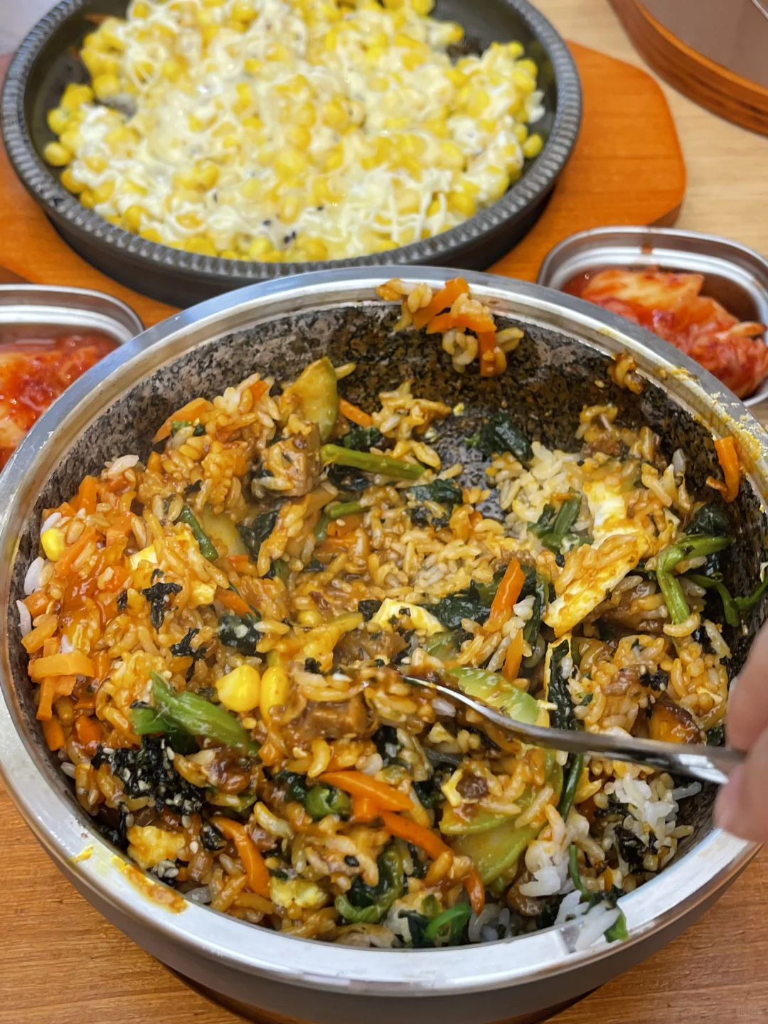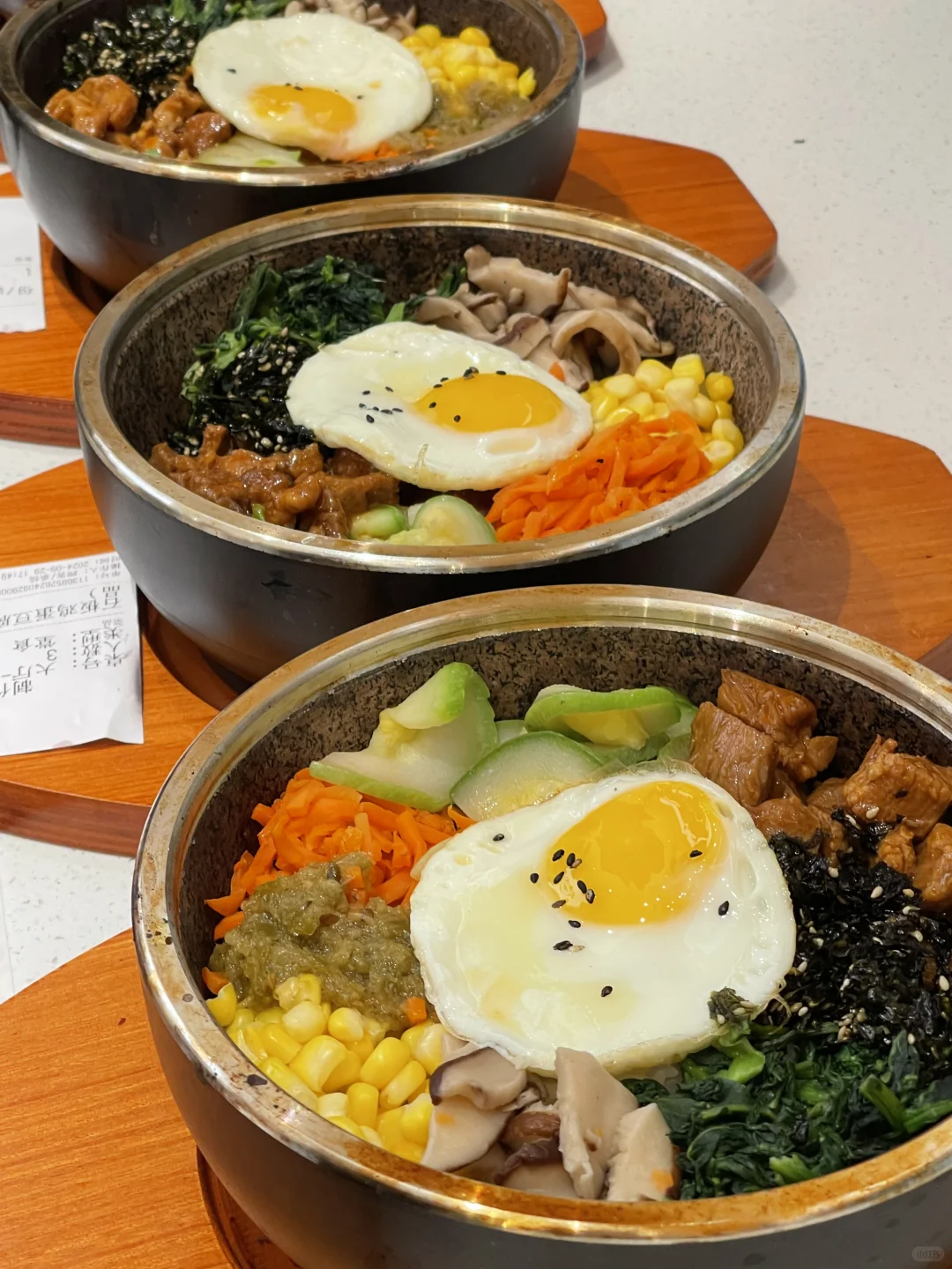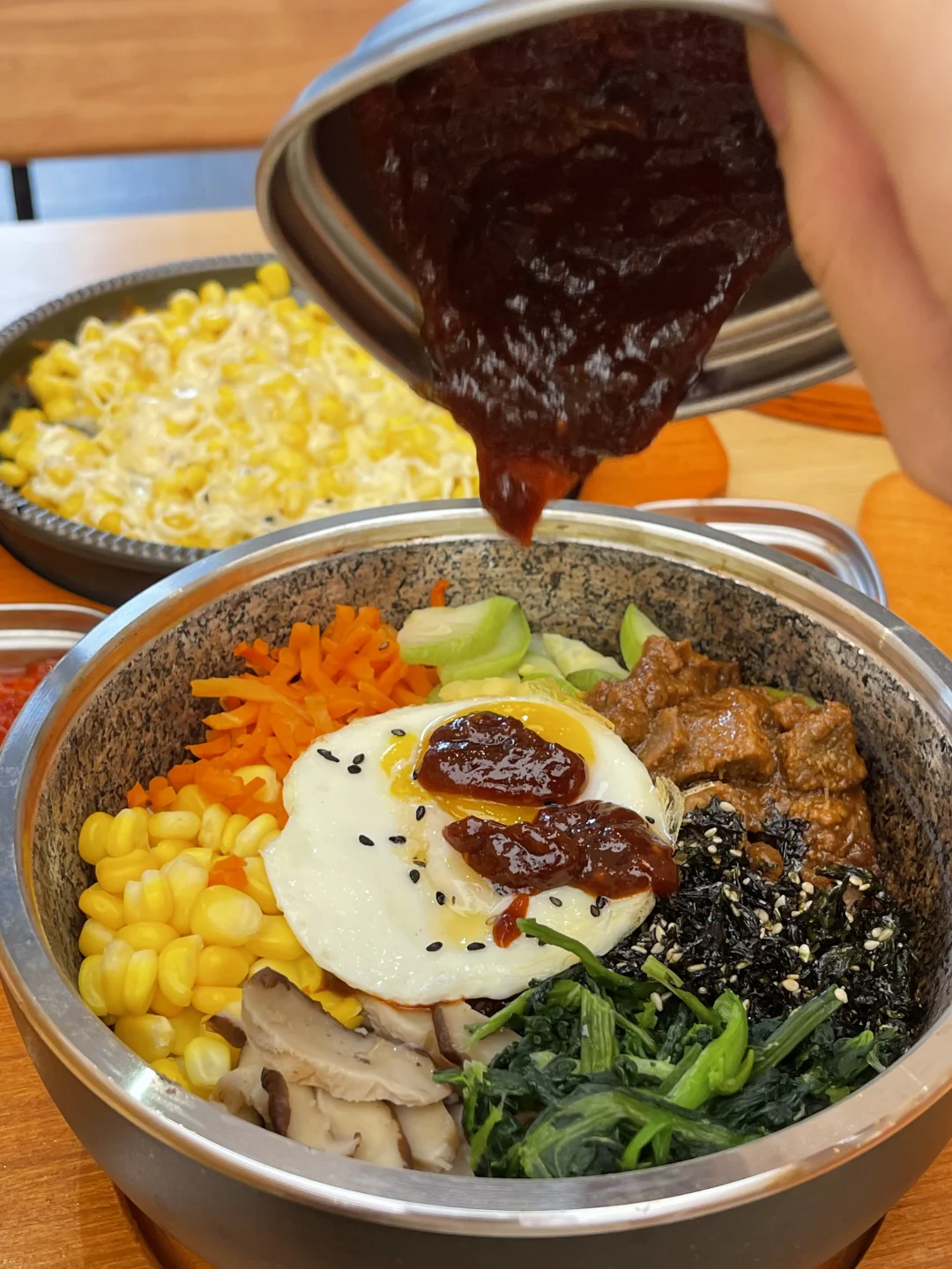 简直就是穷鬼快乐屋好嘛!!!人均30在这里能扶墙出🥹再也不用羡慕有米村拌饭的城市啦!! 小菜和汤都是自助的!米饭🍚也是无限加!烤牛肉拌饭香的要命!牛肉好嫩🤤芝士玉米也炒鸡香甜~盲点不踩雷! 📍 南浦拌饭(万象天地店)