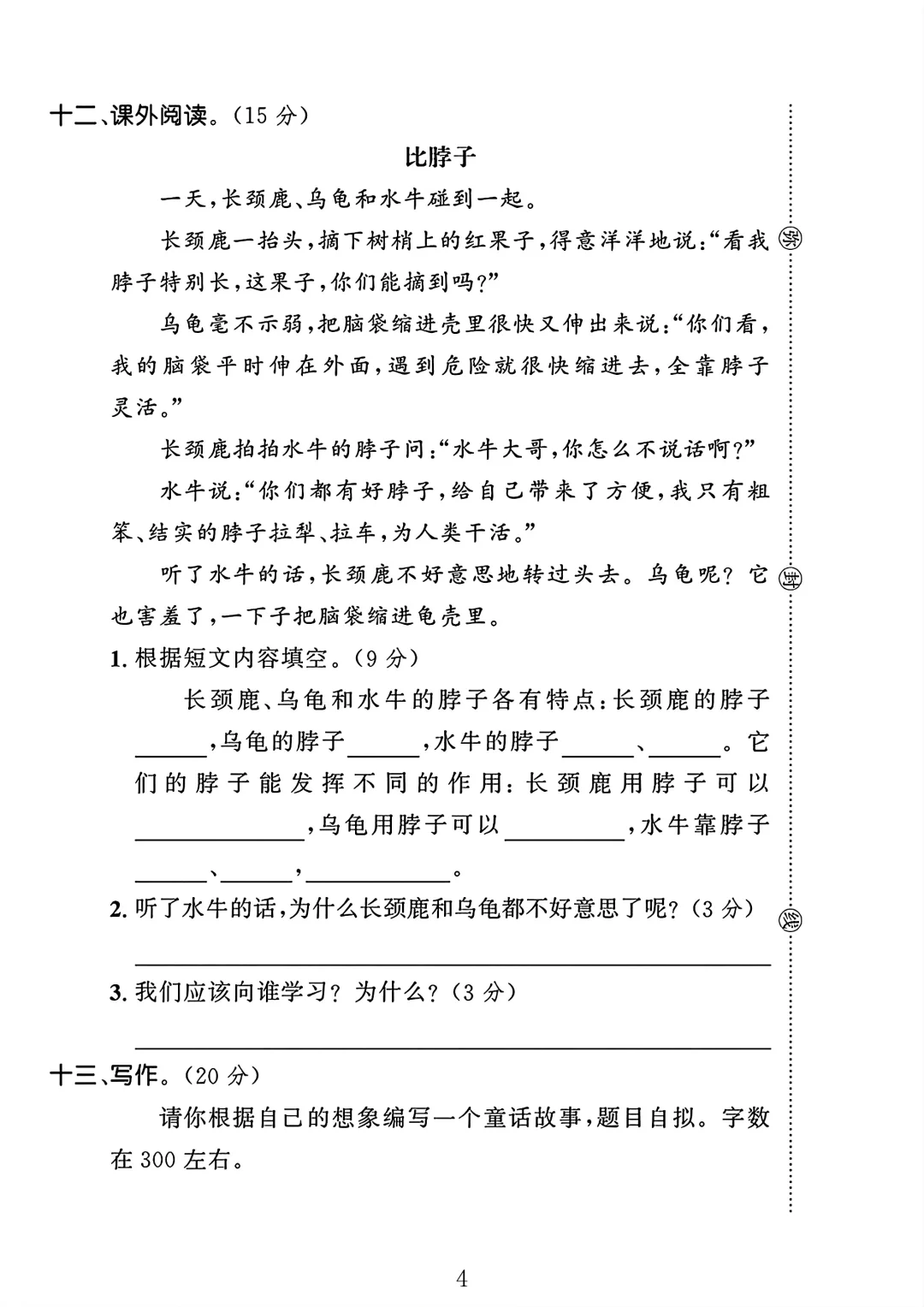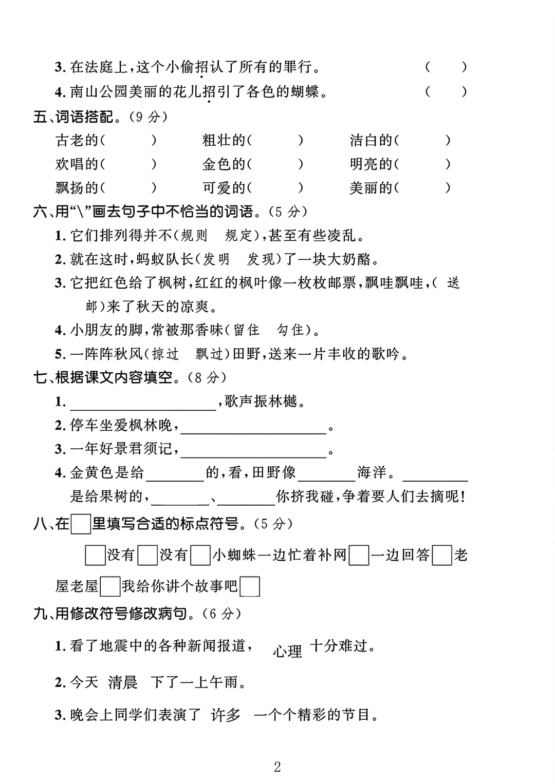 人教版 三年级上册语文 期中考试 期中测试卷 电子版可打印 试卷
