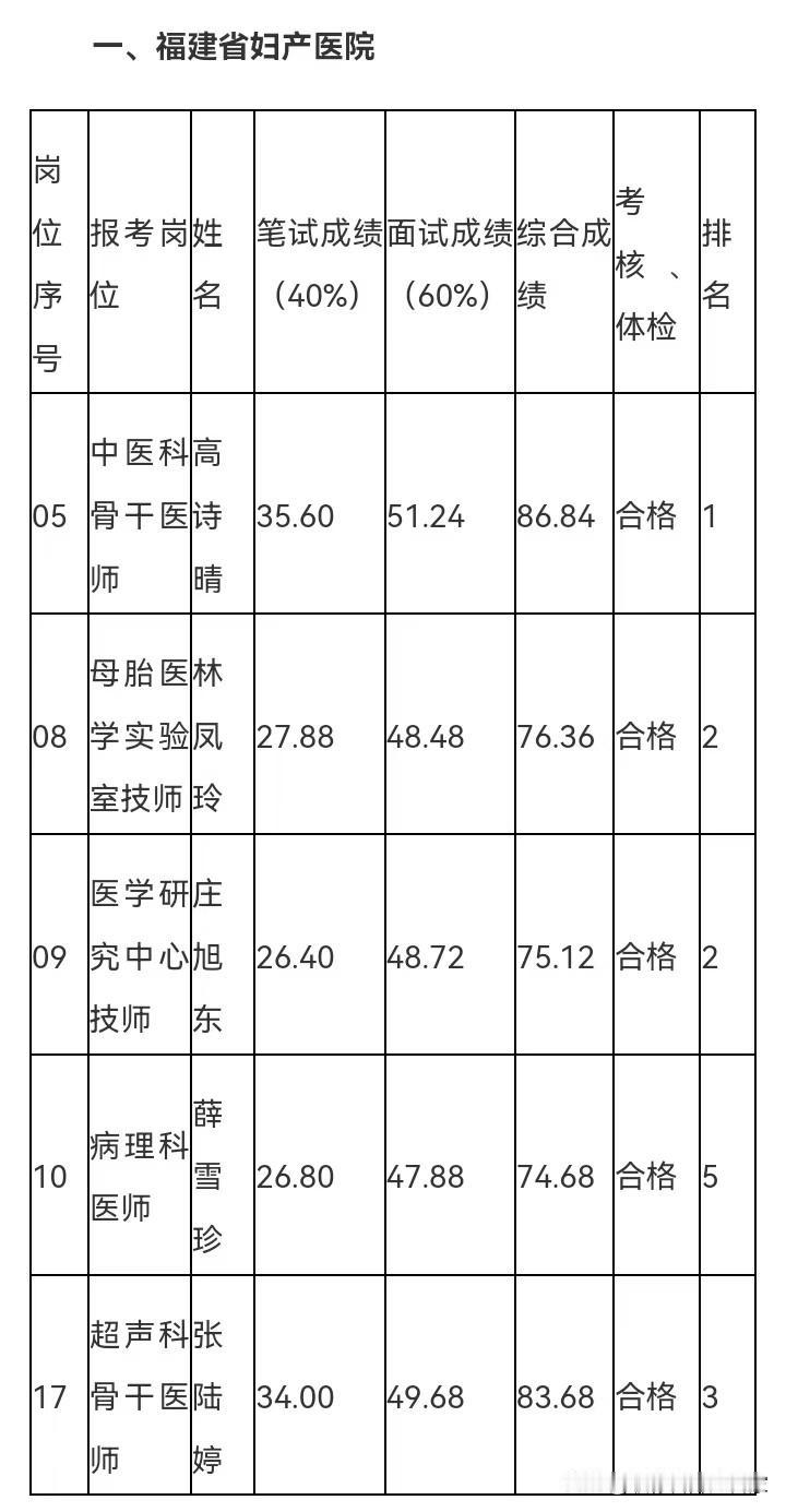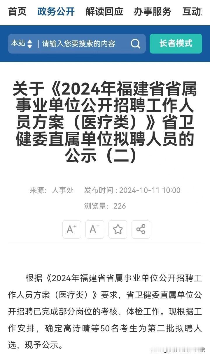 《2024年福建省省属事业单位公开招聘工作人员方案(医疗类)》省卫健委直属单位拟聘人员已公示!快来看看你通过了吗?