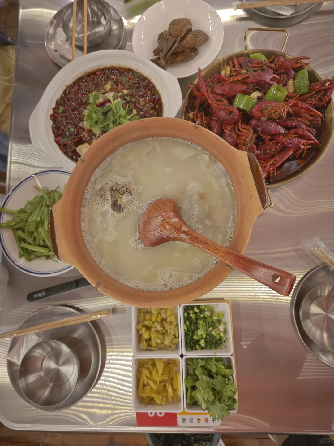 📍 隐藏在都市丛林中的三层楼美食塔,一楼入世,二楼私密包厢,三楼露天广场,星空下的浪漫晚餐,等你来约!💖 🚀 上菜快到不可思议,新鲜直达餐桌,不给饥饿留一丝机会!🍽️ 👑 招牌椒麻龙虾,个头赛过手掌,肉质Q弹紧实,每一口都让人欲罢不能。🌿 清炒空心菜,绿意盎然,为这顿海鲜宴添一抹清新。🍲 猪棒骨猪肚汤,慢火细炖,浓香四溢,温暖你的胃。 🎉 快来喜樂龙虾酒馆,享受这场味蕾与视觉的双重盛宴吧!