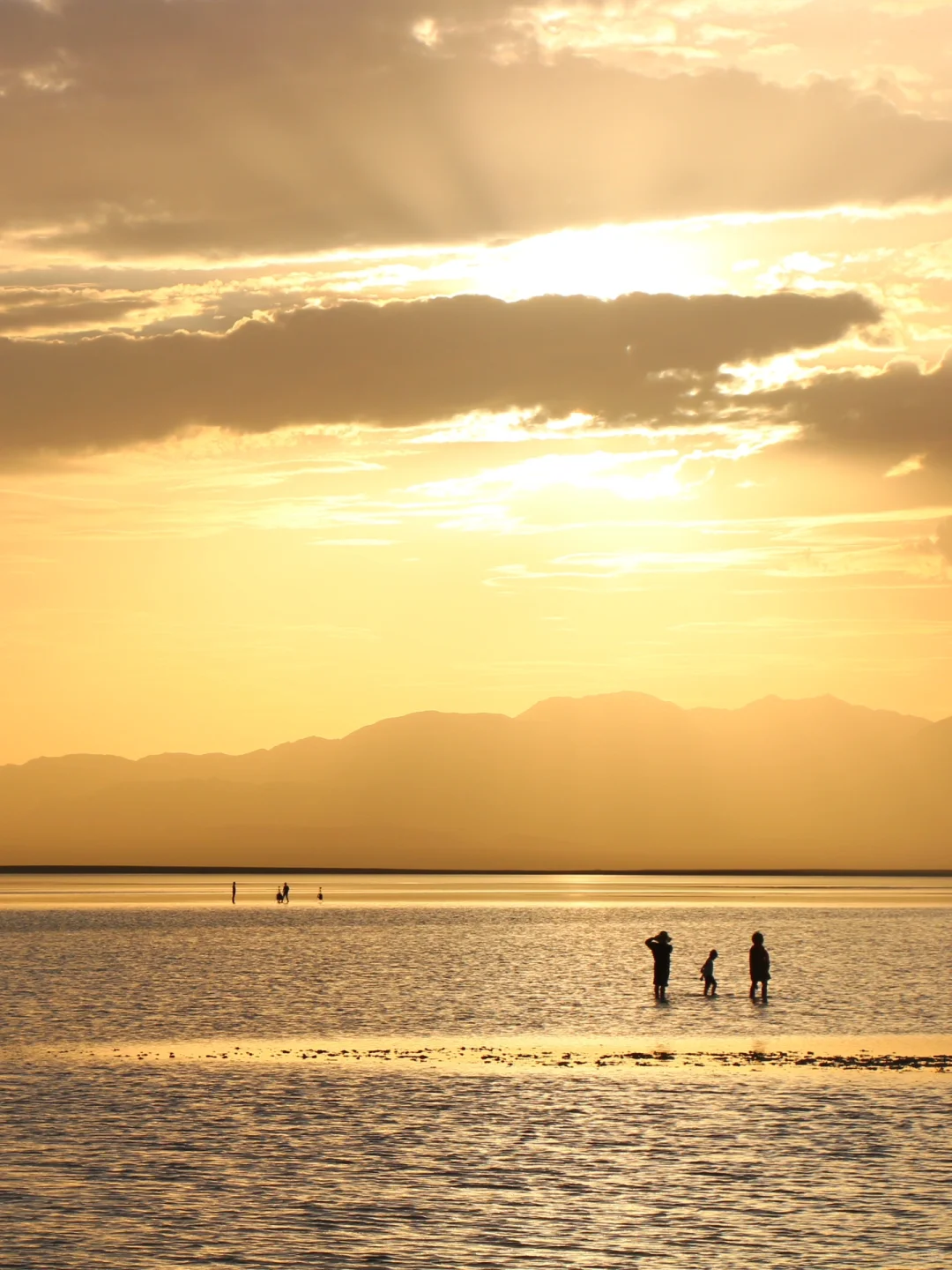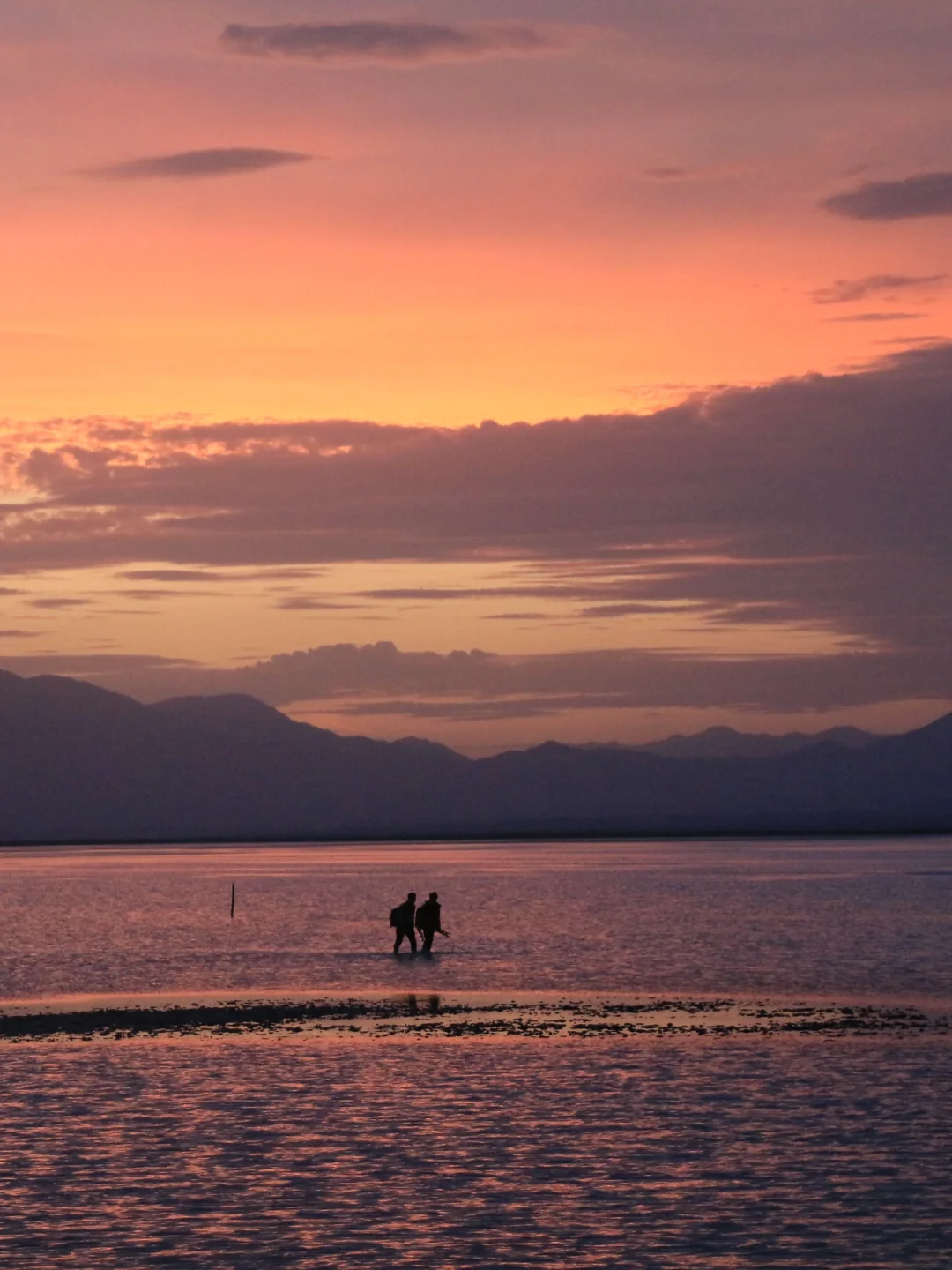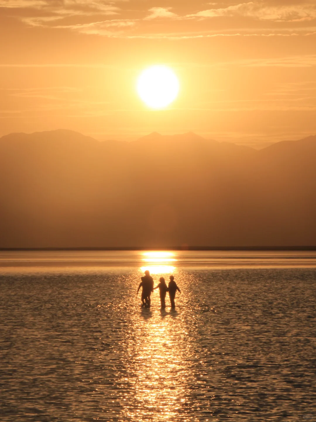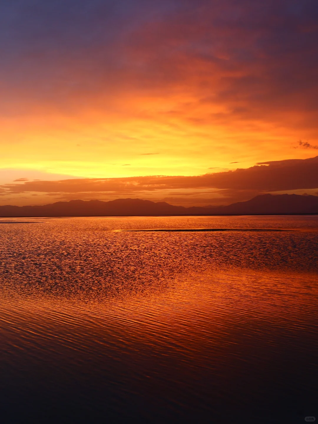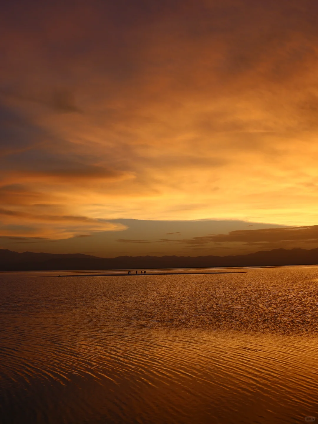 这里的日落很有天空之境的感觉,人在湖中倒影很梦幻。