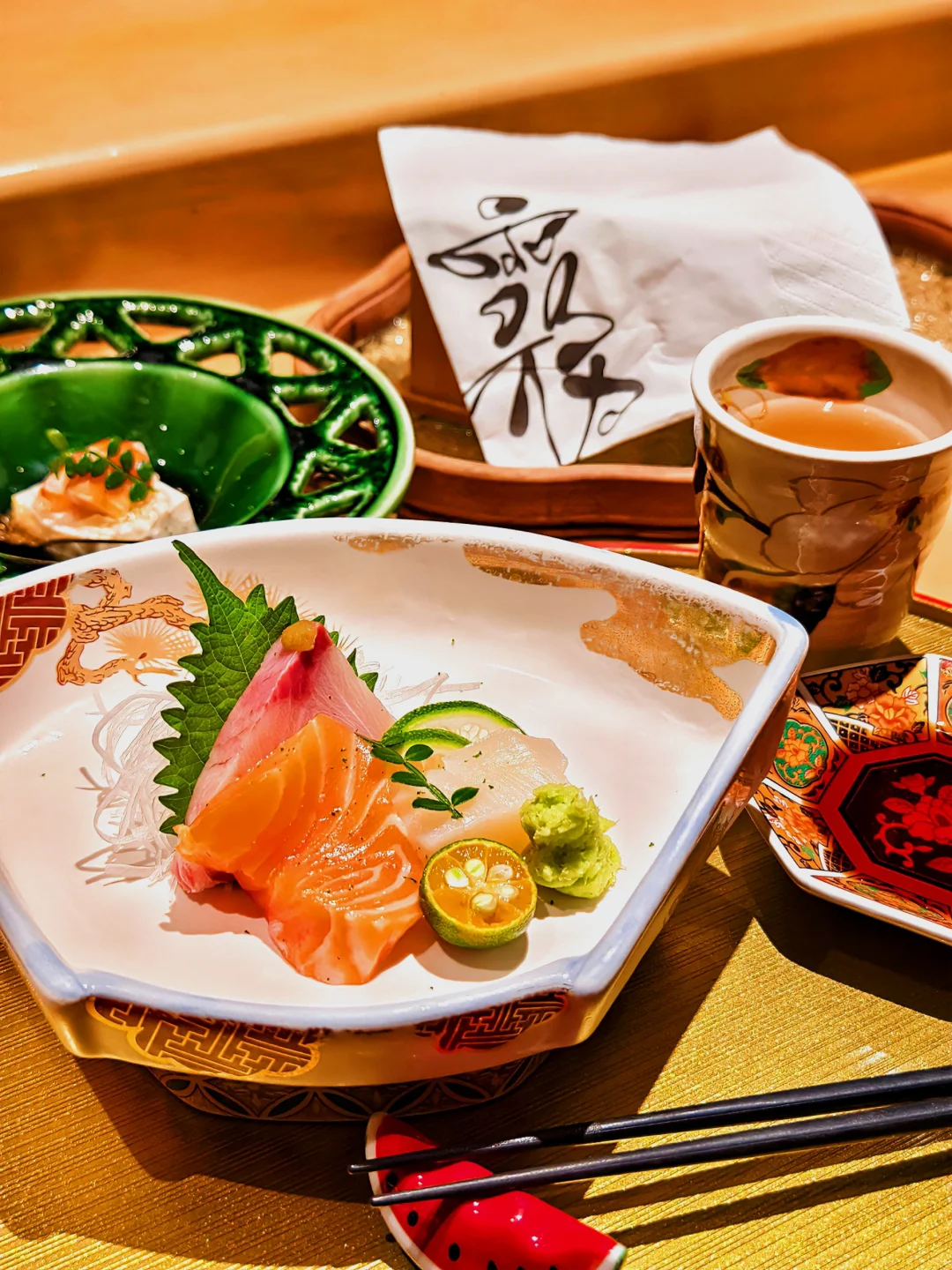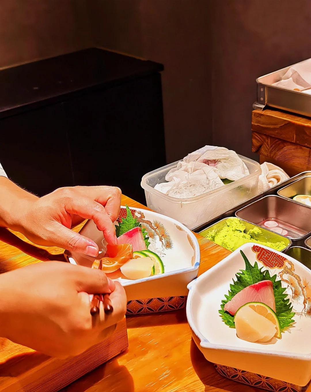 鱼生食材新鲜,搭配芥末酱油,口感清甜,一口一个特别满足[吧唧R][吧唧R][吧唧R]