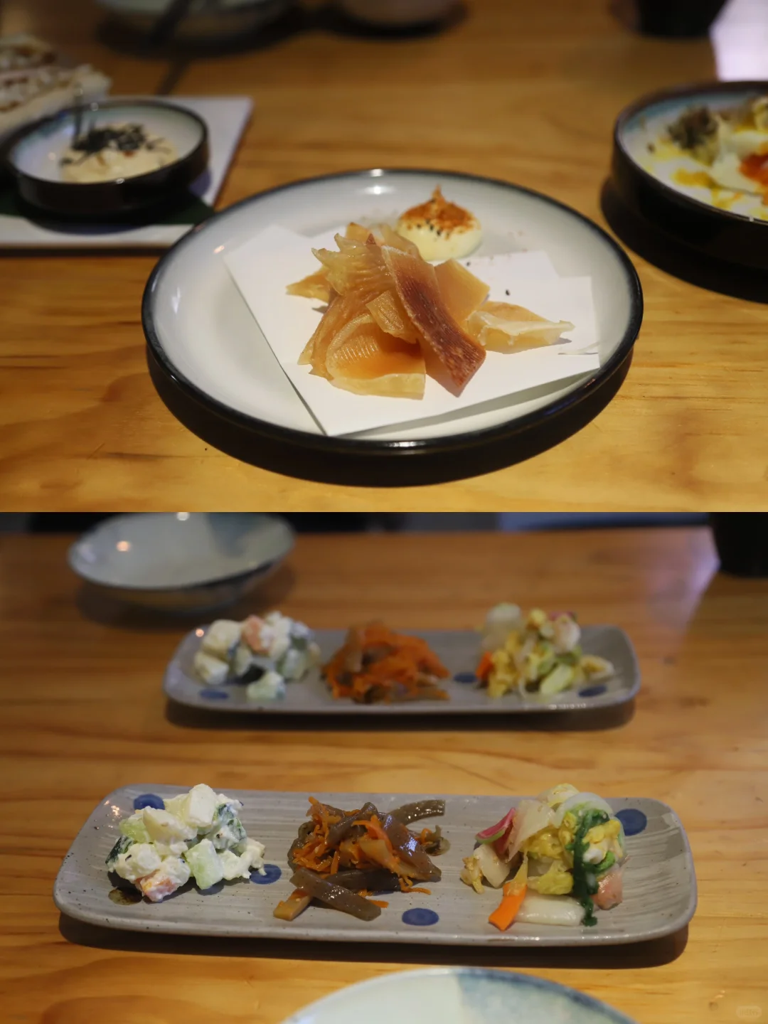 酒馆配的下酒菜自然也很重要,烤鱿鱼片超好吃。