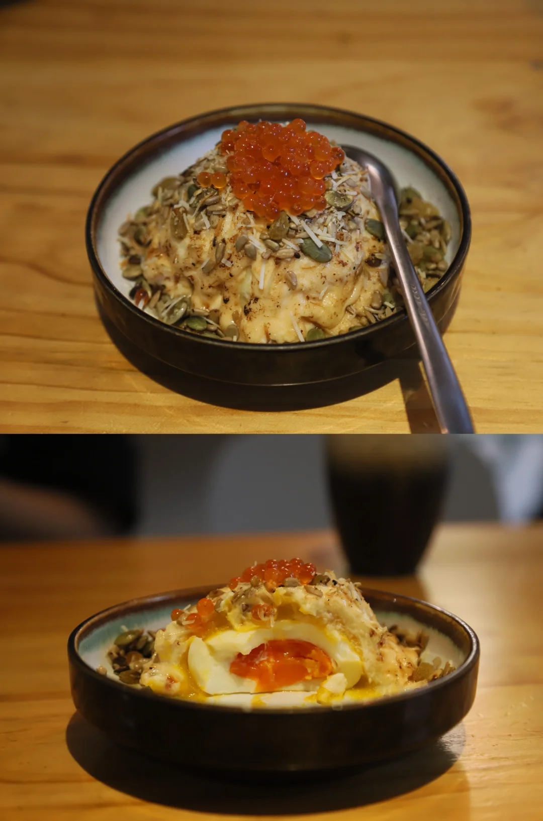 很惊喜的一道菜,一层层堆成火山🌋形状,由外向内有坚果美奶滋,南瓜泥,溏心蛋,这种组合就是王炸!