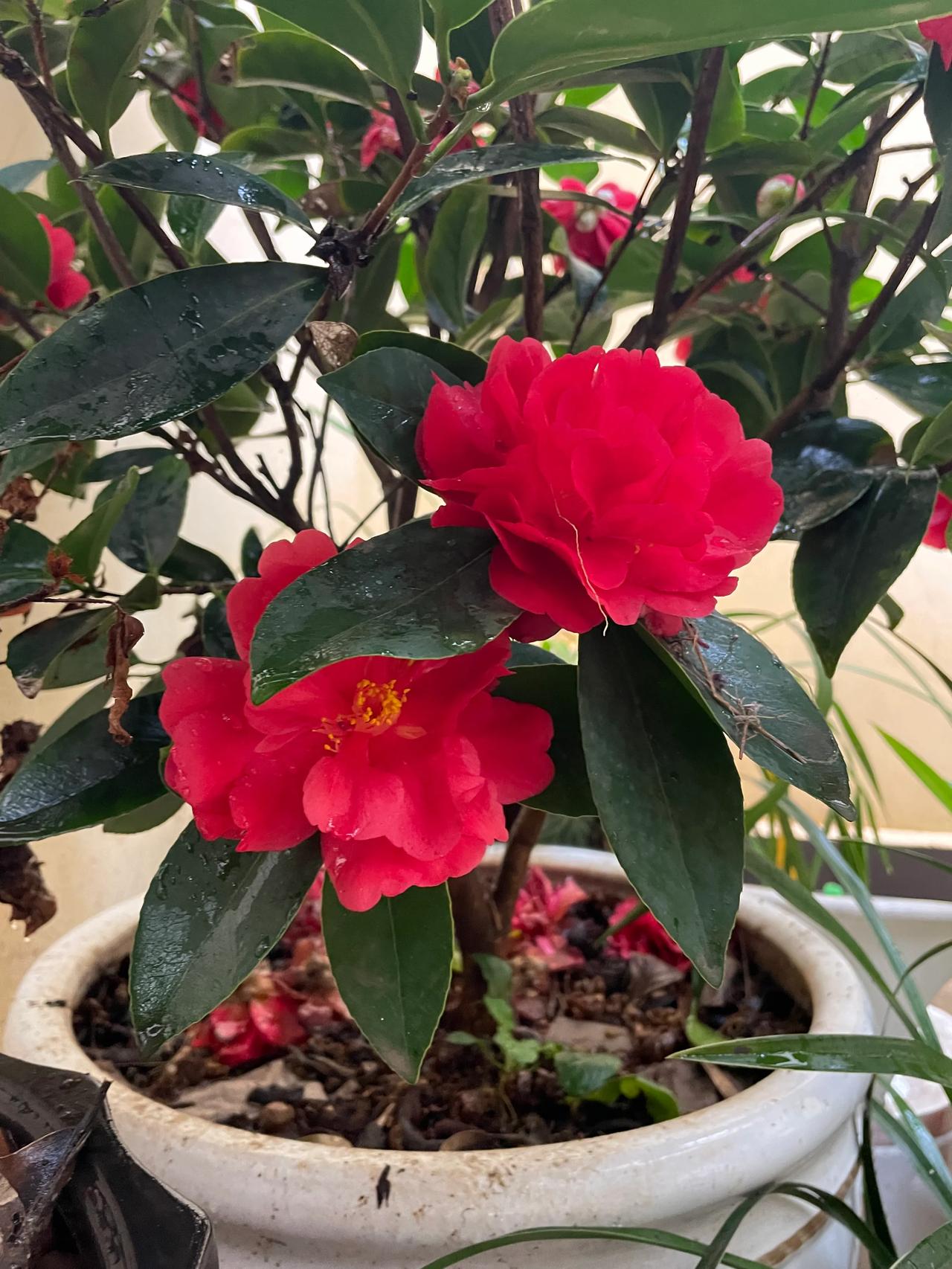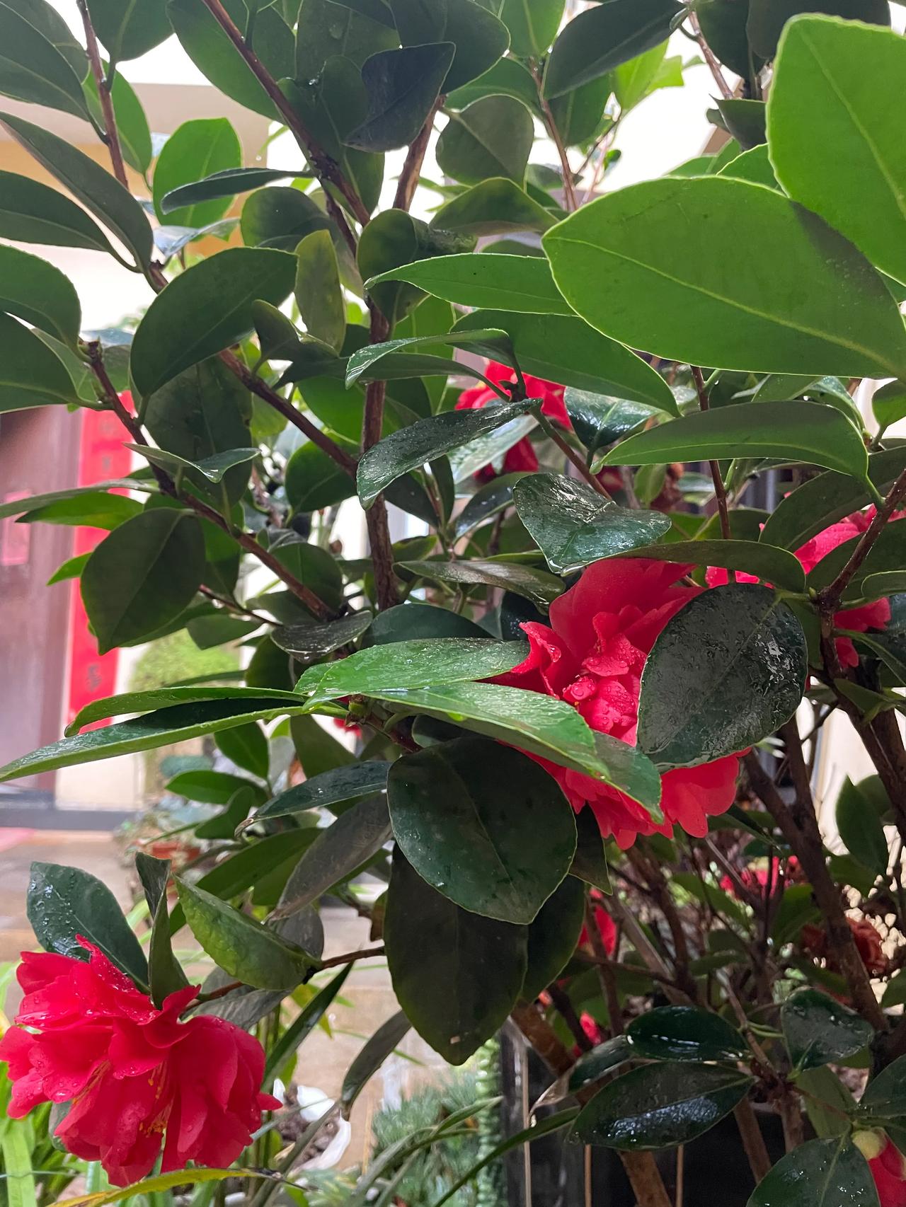 雨后的山茶花,花瓣上带着晶莹的雨珠,显得更加娇艳欲滴。