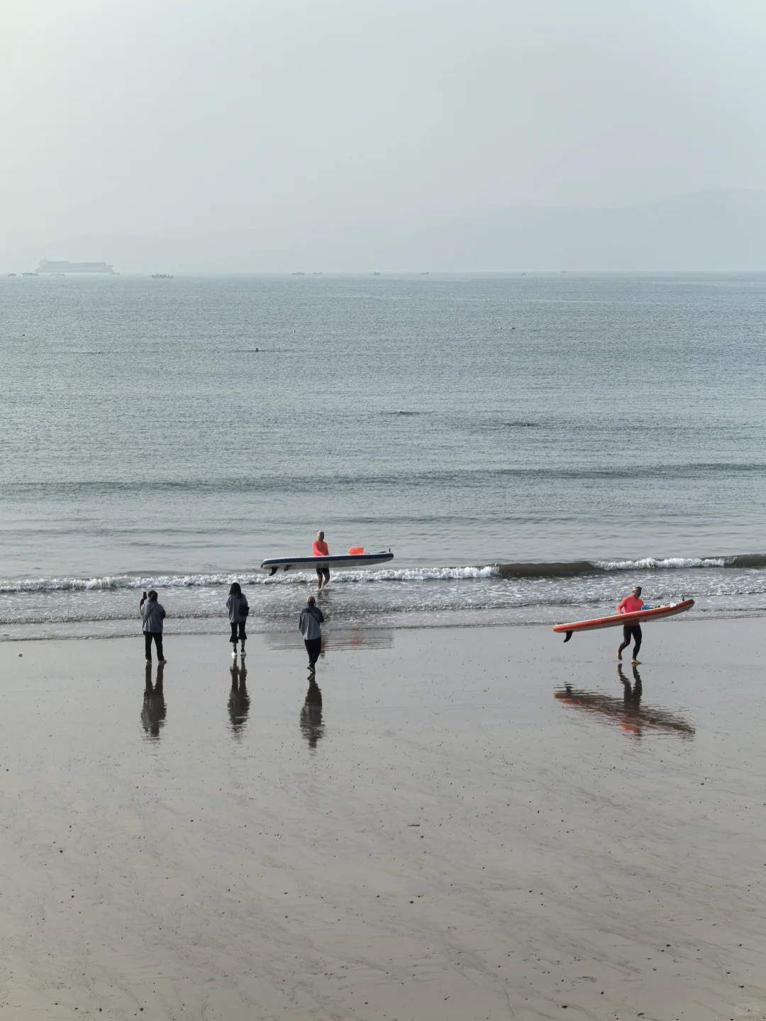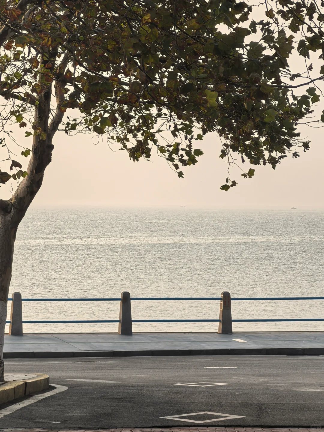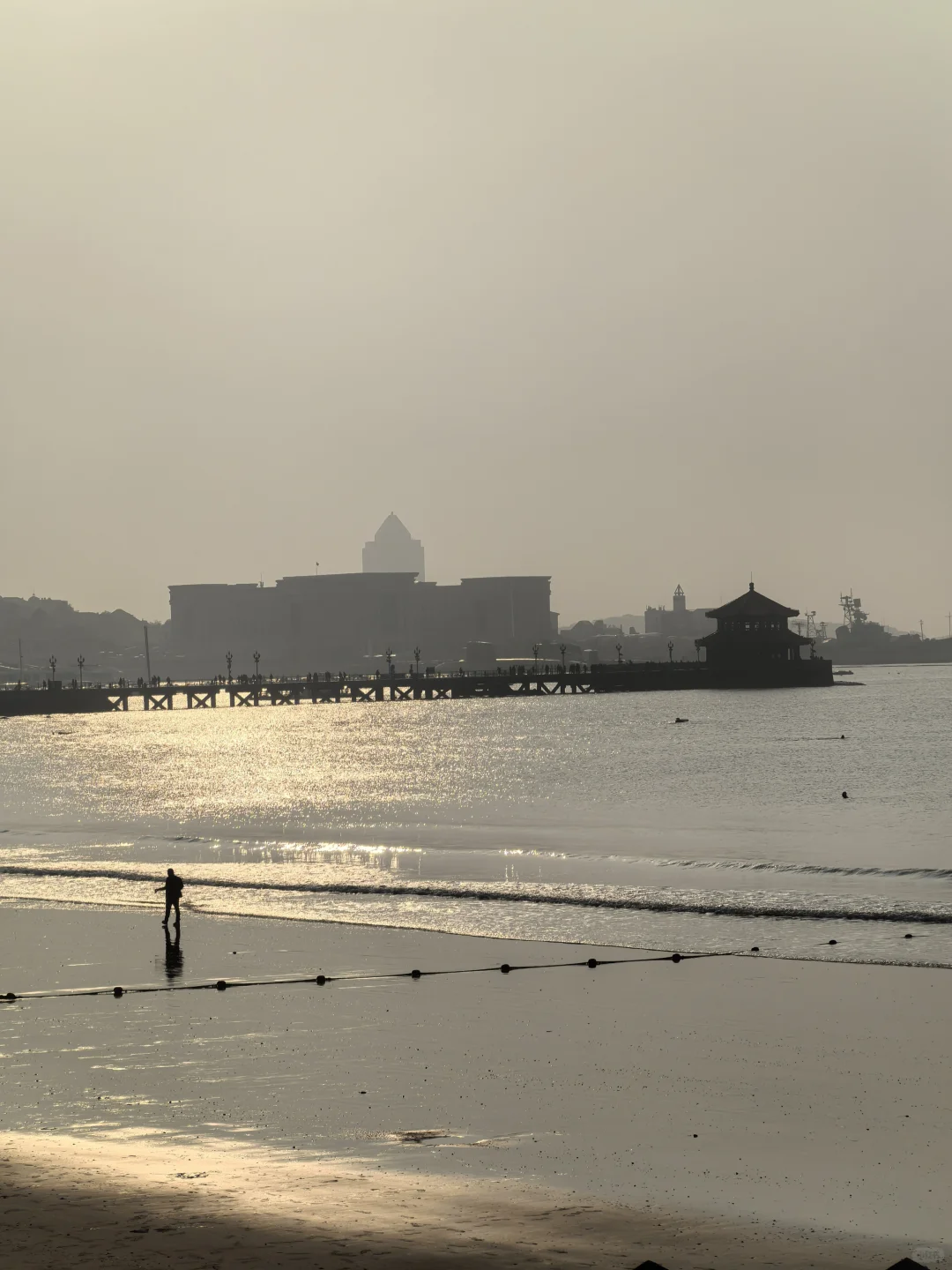今天很热,乱穿衣的时候,海边薄雾。