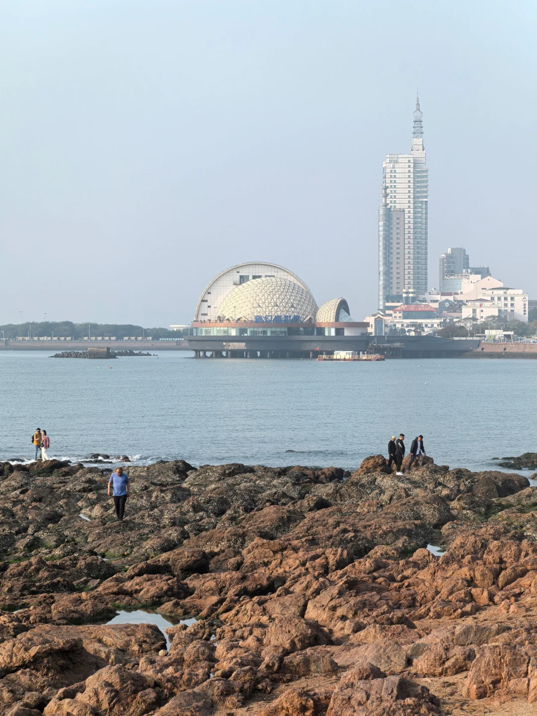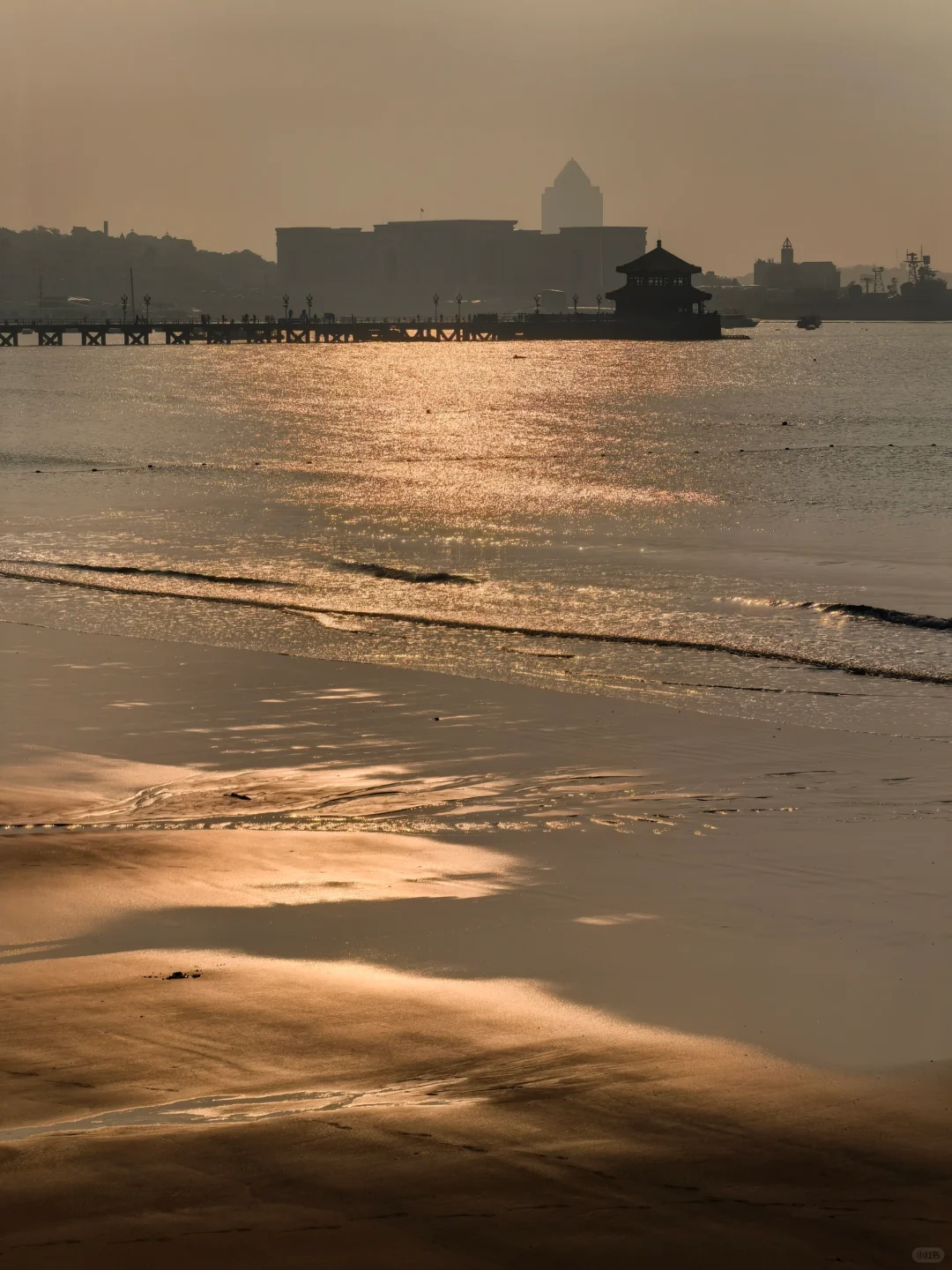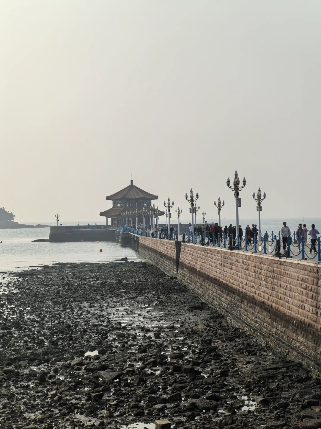 今天很热,乱穿衣的时候,海边薄雾。