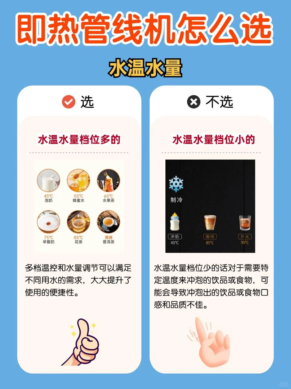 选水温水量档位多的。
