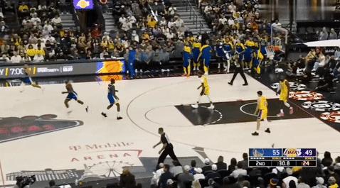 库里这球算扣篮吗,久违了,金州拉文。 上半场末,库里被浓眉扇帽,防守端又被里夫斯用“假摔”造犯规,彻底把库里的怒火和进攻欲望给点燃了。 30秒钟连拿了5分,先是接追梦的快发球点飞詹姆斯,然后直冲篮下完成终结,而且看上去用的终结方式是双手扣篮,现场顿时沸腾,替补席炸开了锅,库里自己也不可置信,我36岁的老学生了,还能扣篮,甭管是不是勉扣,都值得一番兴奋。 老詹迅速回应了一个两分后,库里打最后一攻,迎着浓眉又是一记超远三分,湖人前面费了老大劲的追分算是白费了,一下子又回去了。