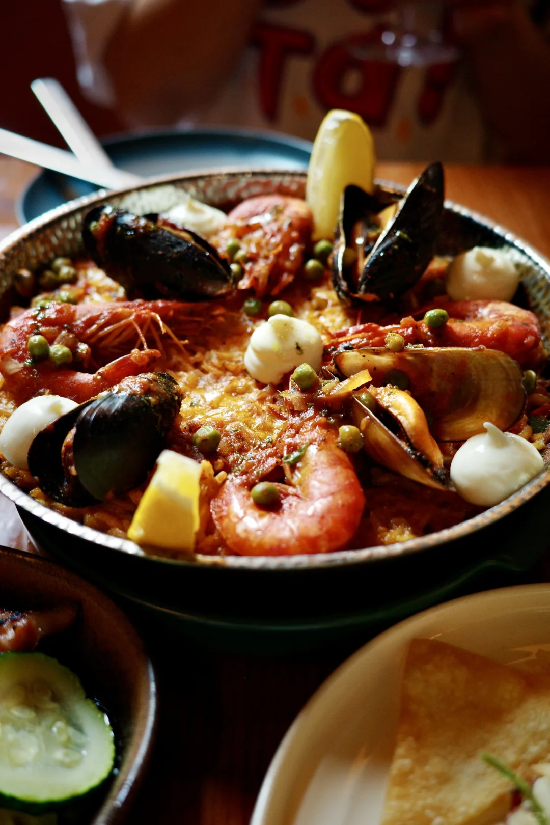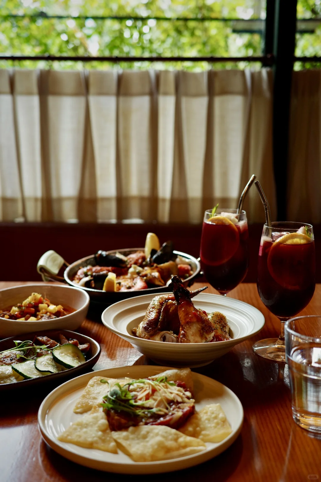 西班牙海鲜饭堪称一Jue。海虹与虎虾的鲜美融入饭中,再加上鸡腿肉和鱿鱼,丰富的口感在口中绽放。牛肉塔塔也令人惊艳,新鲜的牛肉搭配香料和黄芥末酱,没有丝毫生肉的血腥气,反而呈现出果冻般的柔嫩口感。烤鸡更是皮脆肉嫩,多汁的鸡肉让人回味无穷,忙碌一周后,奖励自己一个油香的大鸡腿子,实在是惬意之极。