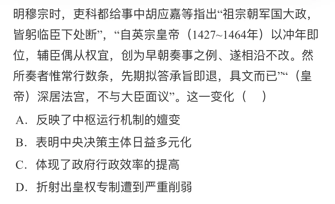 本题是单类型单项选择题。根据材料主题干的设问词可知本题是本质题。根据材料时间信息可知准确时空是: