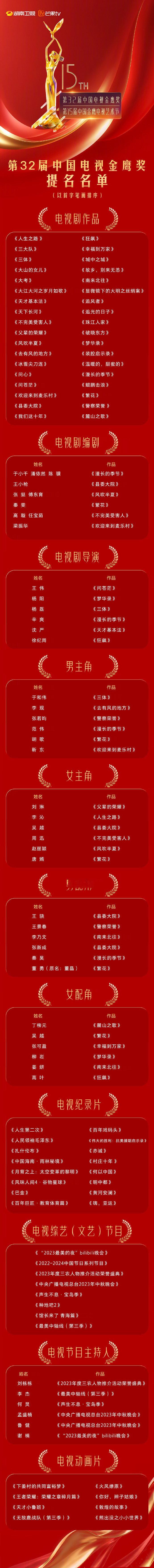 #第32届金鹰奖提名名单# 第32届金鹰奖提名名单来啦,#赵丽颖两部作品提名金鹰