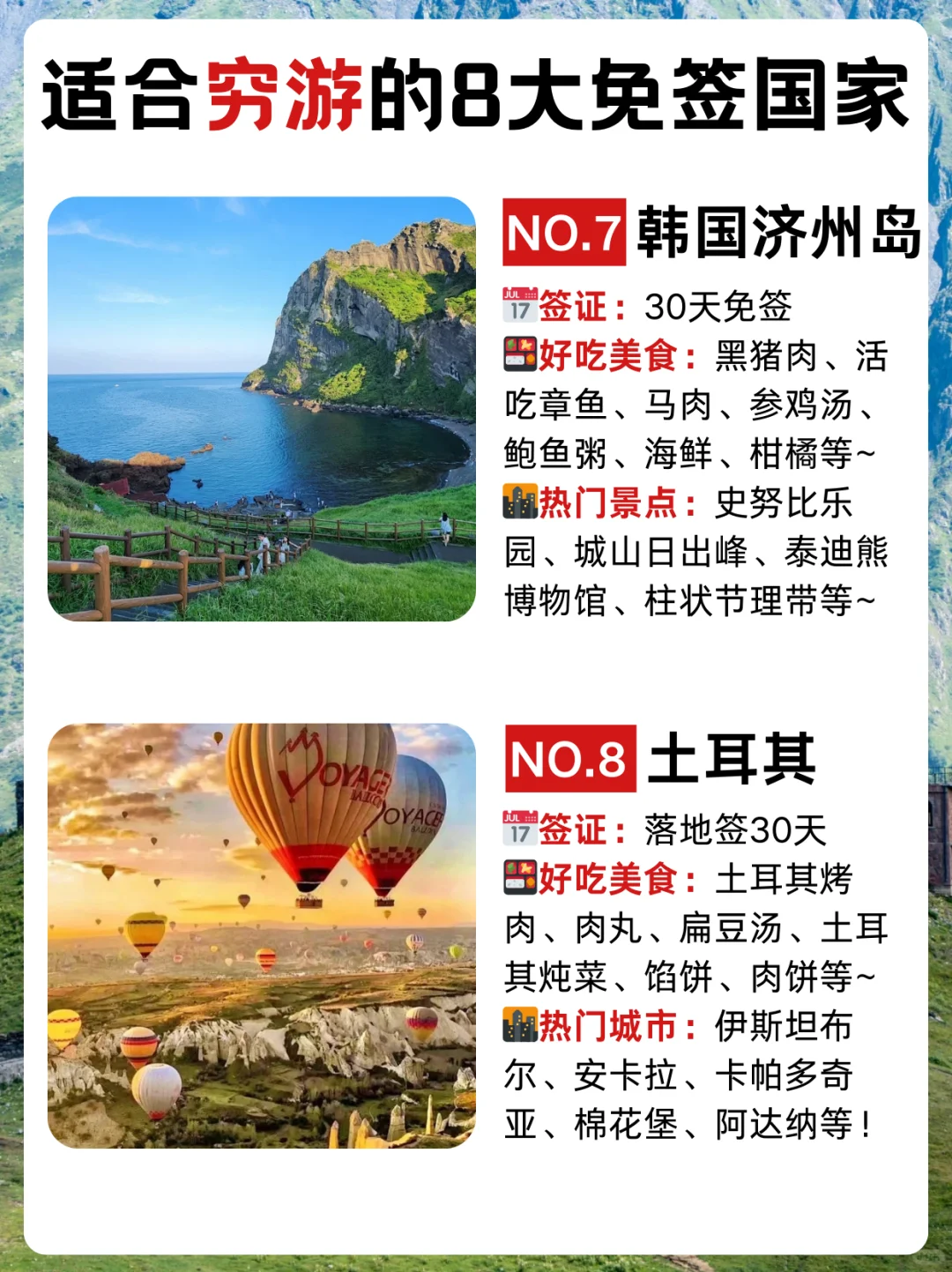 ✅小编给大家整理了8个很适合穷游的免签国家(个别落地签/电子签)拿着护照就能说走就走的类型‼️