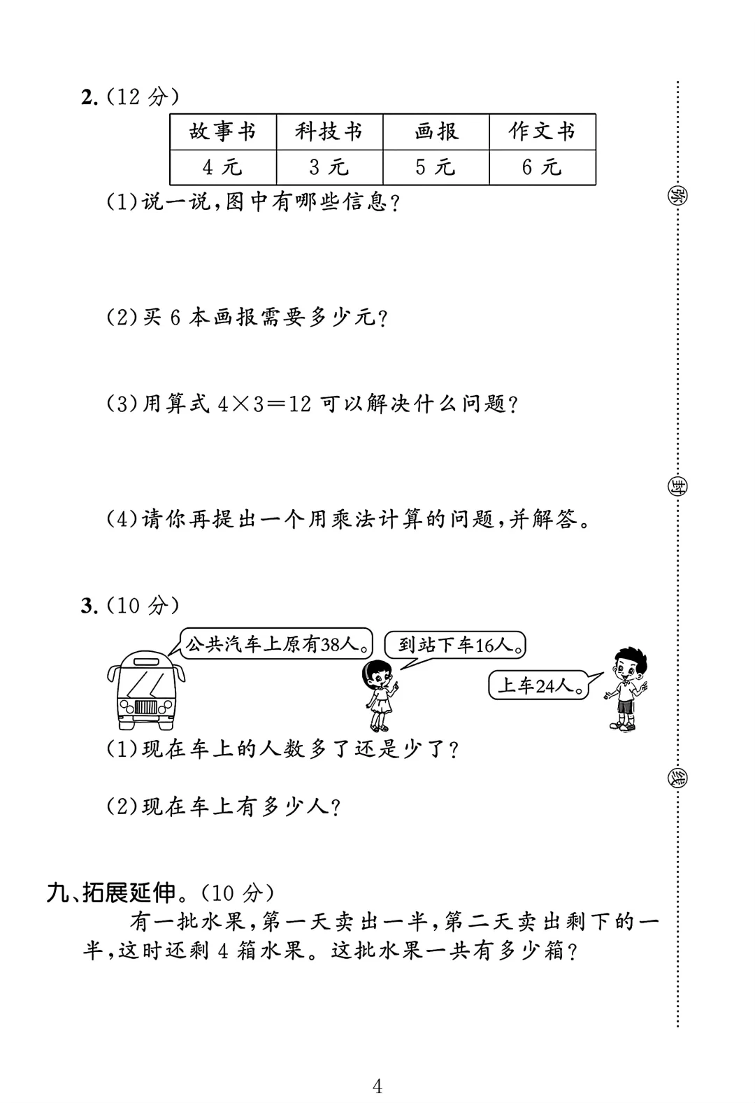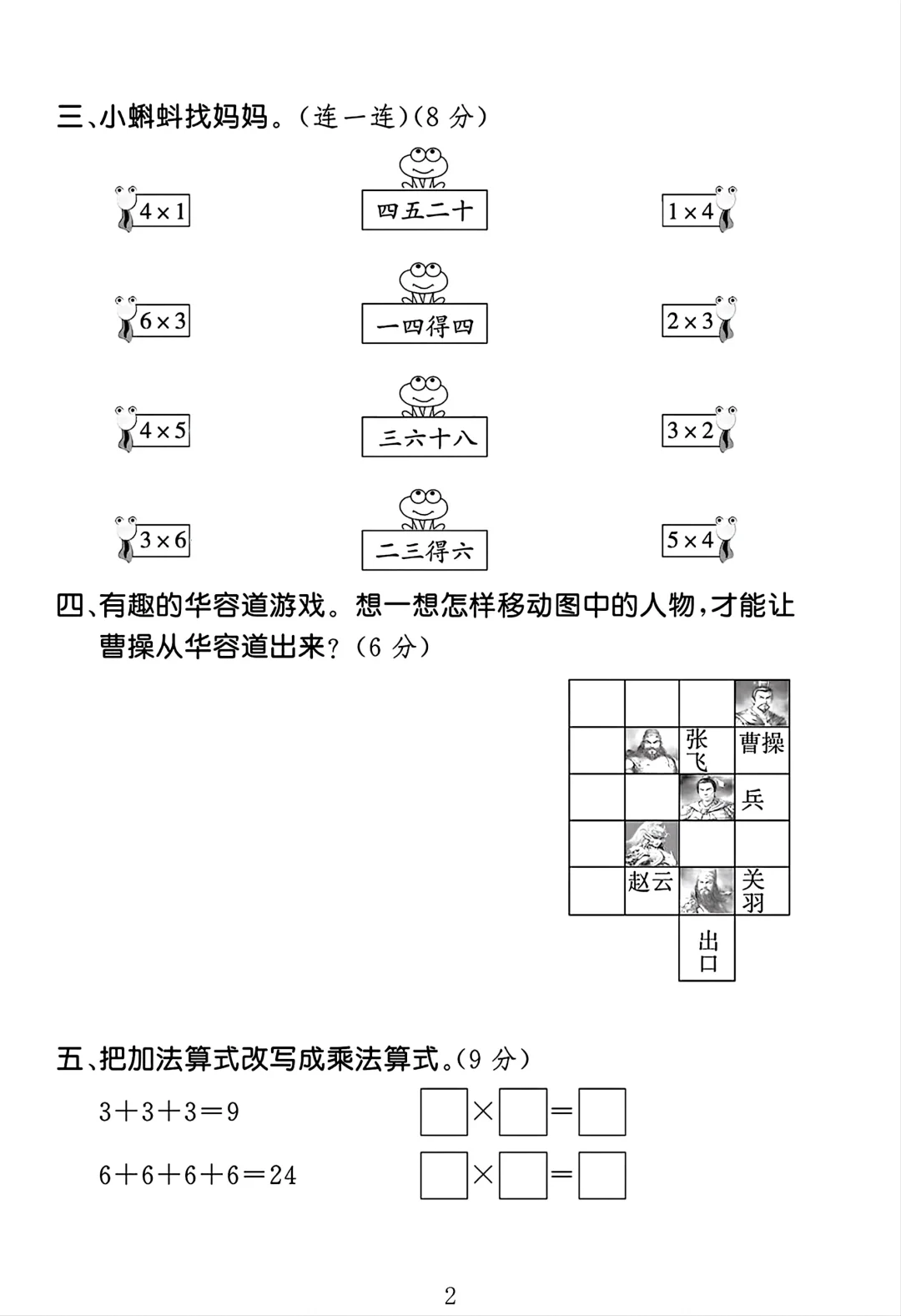 北师大版数学 二年级上册数学 期中考试 期中试卷 电子版可打印 试卷