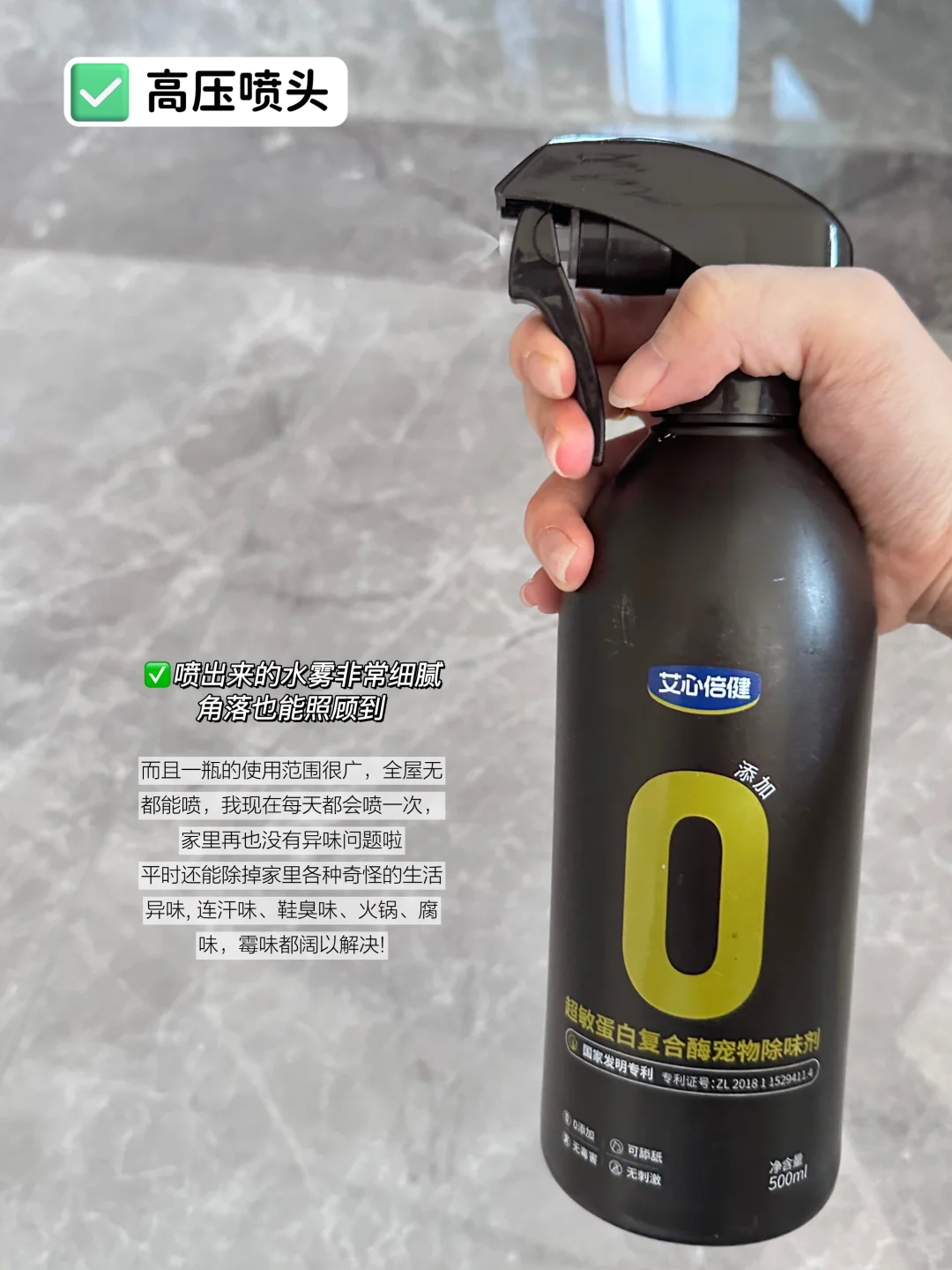 这一款用下来效果真的惊艳到我了,利用超敏蛋白复合酶从根源分解异味,而不是以香遮臭,喷出来也没有任何味道,像我这种对浓香很敏感的人真的狠狠爱上😍成分很简单,只有生物酶和纯化水,0添加香精、色素、防腐剂,如纯净水般安quan,还有无毒无害的检测报告,更加放心给毛孩子使用了。而且一瓶的使用范围很广,全屋都能喷,我现在每天都会喷一次,家里再也没有异味问题啦