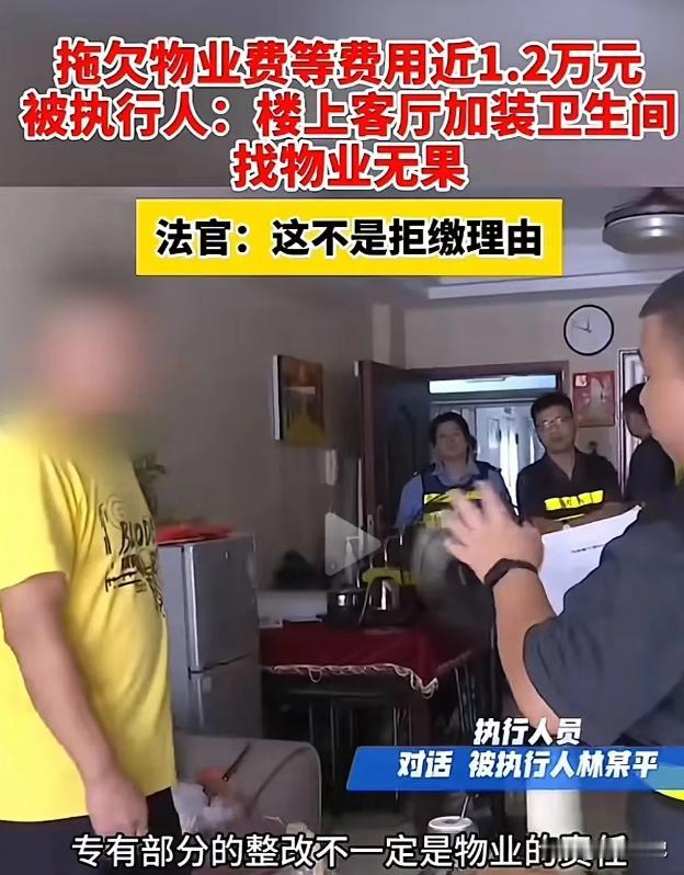 福建泉州,男子拒绝缴纳物业费被告上法庭?这一切都是因为男子楼上邻居在客厅加装卫生间,噪声影响男子生活。法院判决男子赶紧缴纳拖欠的物业费,男子心有不甘还是不交,法院只好强制执行,从男子的银行卡里将钱划给物业。 楼上一个卫生间,楼下业主在崩溃边缘。这不仅仅是噪音扰民,更是现代城市社区生活的一道难题,牵扯着邻里关系、物业管理以及法律的微妙平衡。 林傲平这位普通业主,却因为这看似不起眼的问题,被卷入了一场旷日持久的纠纷,也揭开了和谐家园构建背后的复杂图景。 (信息来源:第一帮帮团) 林傲平原本过着平静的生活,然而楼上新增的卫生间打破了他的宁静。冲水声、水管的嗡鸣,日夜不停地在他的头顶回响,让他如同生活在一个巨大的共振箱里。 更让他难以忍受的是,楼上卫生间的正下方就是他的客厅,这种空间上的重叠让他感到私人领域被侵犯,心理上极度不适。 面对困境,林傲平将目光投向了物业公司。他希望物业能够介入,要求楼上邻居拆除或整改卫生间。在他看来,物业作为小区的管理者,有责任维护业主的权益,保障居住环境的安宁。 可物业也是说这个道那个,反正就是不肯发力。 由于对物业的处理方式不满,林傲平拒绝缴纳物业费,以示抗议。物业公司多次催缴无果后,将他告上了法庭。 法院判决让他尽快交上物业费,至于楼上卫生间的问题,物业需要尽到协调的责任,并无权让业主拆除。 面对法院的判决,林傲平仍然心有不甘,拒绝履行缴费义务。最终,法院采取了强制执行措施,从他的银行账户中扣划了拖欠的物业费。 强制执行的过程虽然维护了法律的尊严,却也暴露出了一些问题。林傲平认为,法院的判决过于机械,没有充分考虑他的实际情况。 他并非恶意拖欠物业费,而是希望通过这种方式表达对物业服务的不满。虽然法律程序合规,但他仍然感到自己的权益没有得到充分保障。 经历了这场风波后,小林开始反思自己的行为。他意识到,冲动和对抗并不能解决问题,只有通过合法途径才能有效维护自身权益。 他开始收集相关法律法规,准备向住建部门投诉楼上邻居违规加装卫生间的问题。同时,他也尝试与楼上邻居沟通,寻求一个双方都能接受的解决方案。 和谐社区的构建并非一朝一夕之功,需要个人责任与集体利益的协调,更需要各方共同努力。只有通过沟通、理解和合作,才能化解矛盾,解决问题,创造和谐的居住环境。 林傲平的故事,或许能为我们提供一些借鉴和思考,帮助我们更好地理解邻里关系、物业管理和法律的微妙平衡,共同努力,共筑和谐家园。
