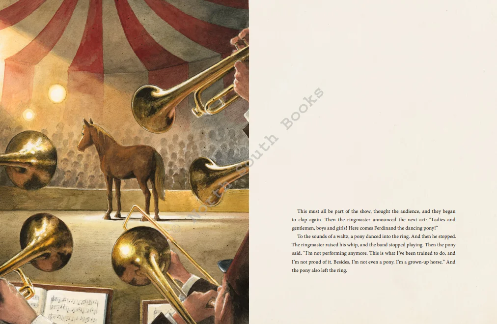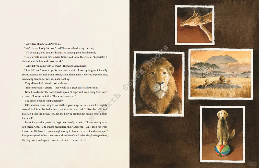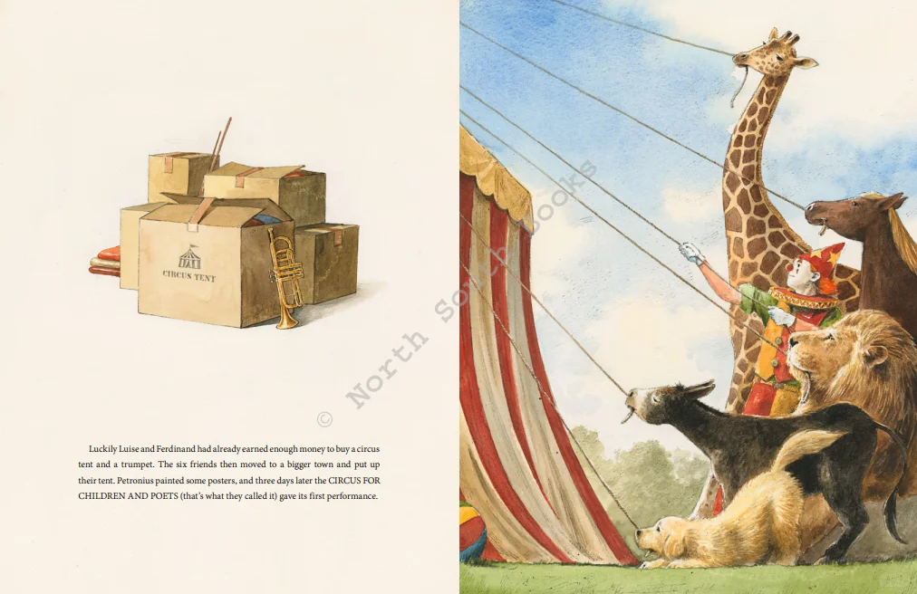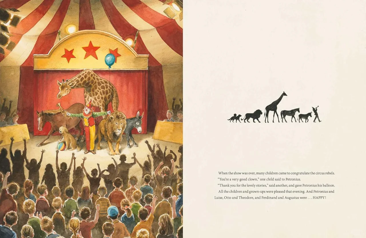 通过一点耐心和创造力,朋友们就会意识到如何才能让他们快乐。他们可能没有大顶棚,但Petronius可以讲述他的精彩故事,狗可以不戴项圈自由奔跑,马如果困了,可以在华尔兹中打盹。很快,这群朋友表演了他们梦寐以求的表演。