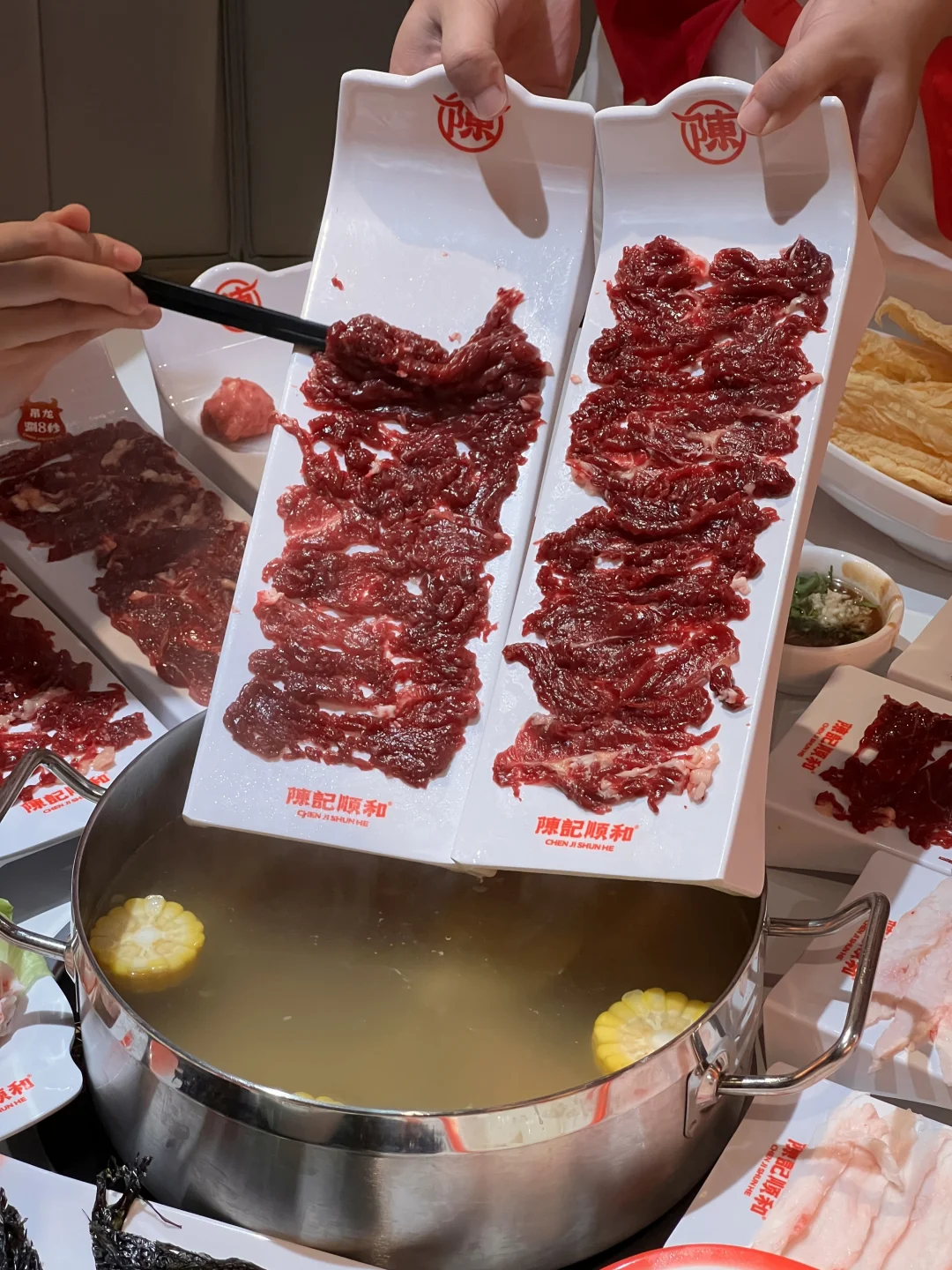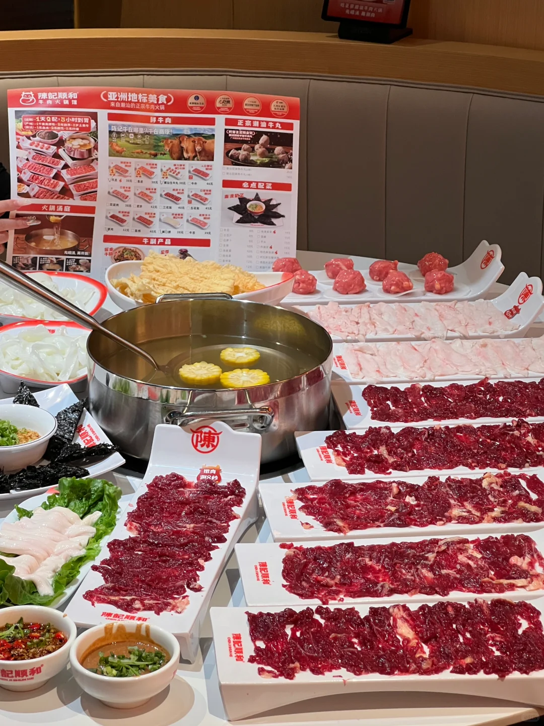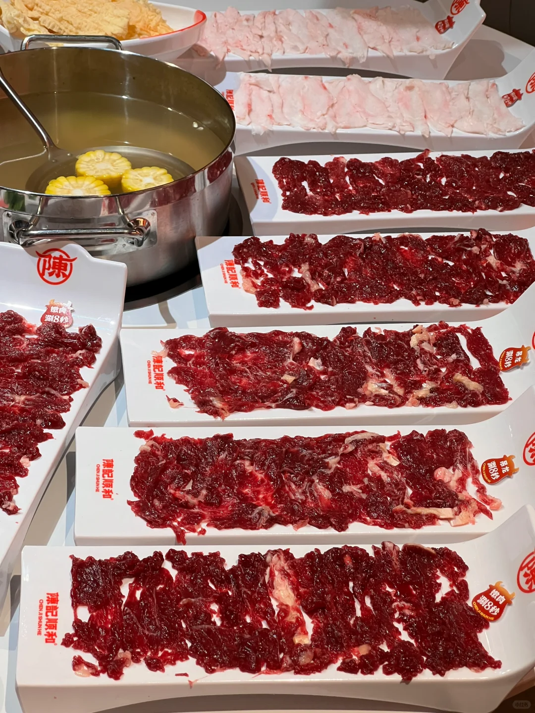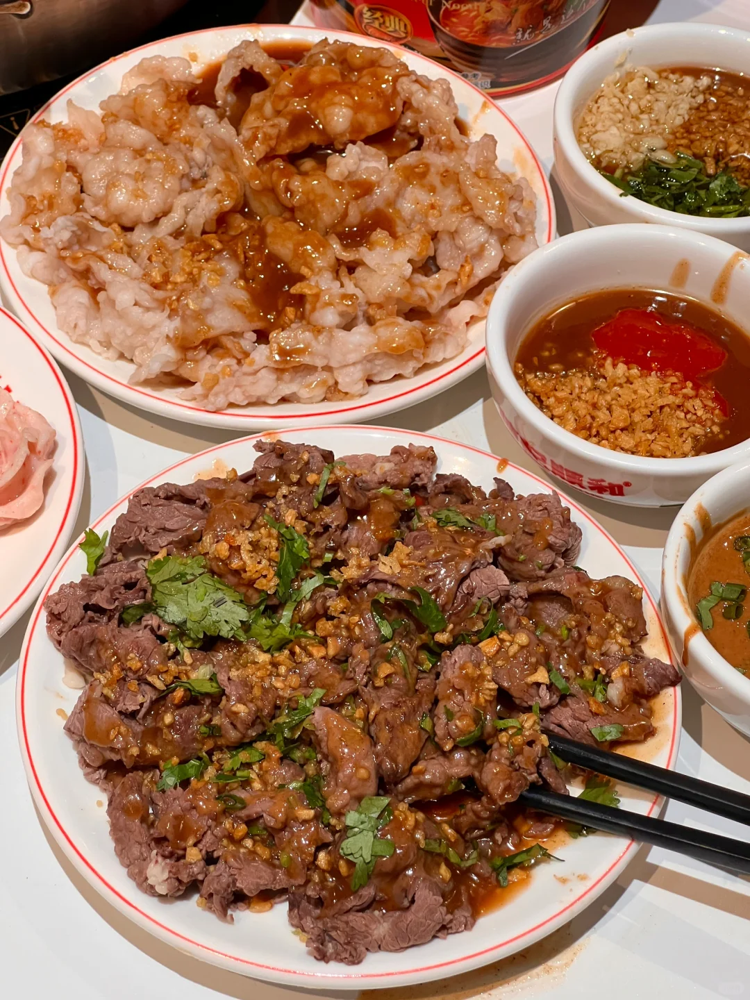 来自云贵川的小黄牛 吊龙、嫩肉、匙柄…牛肉🐂都是新鲜现切的 都可以闭眼点 记得要蘸沙茶酱和金蒜!