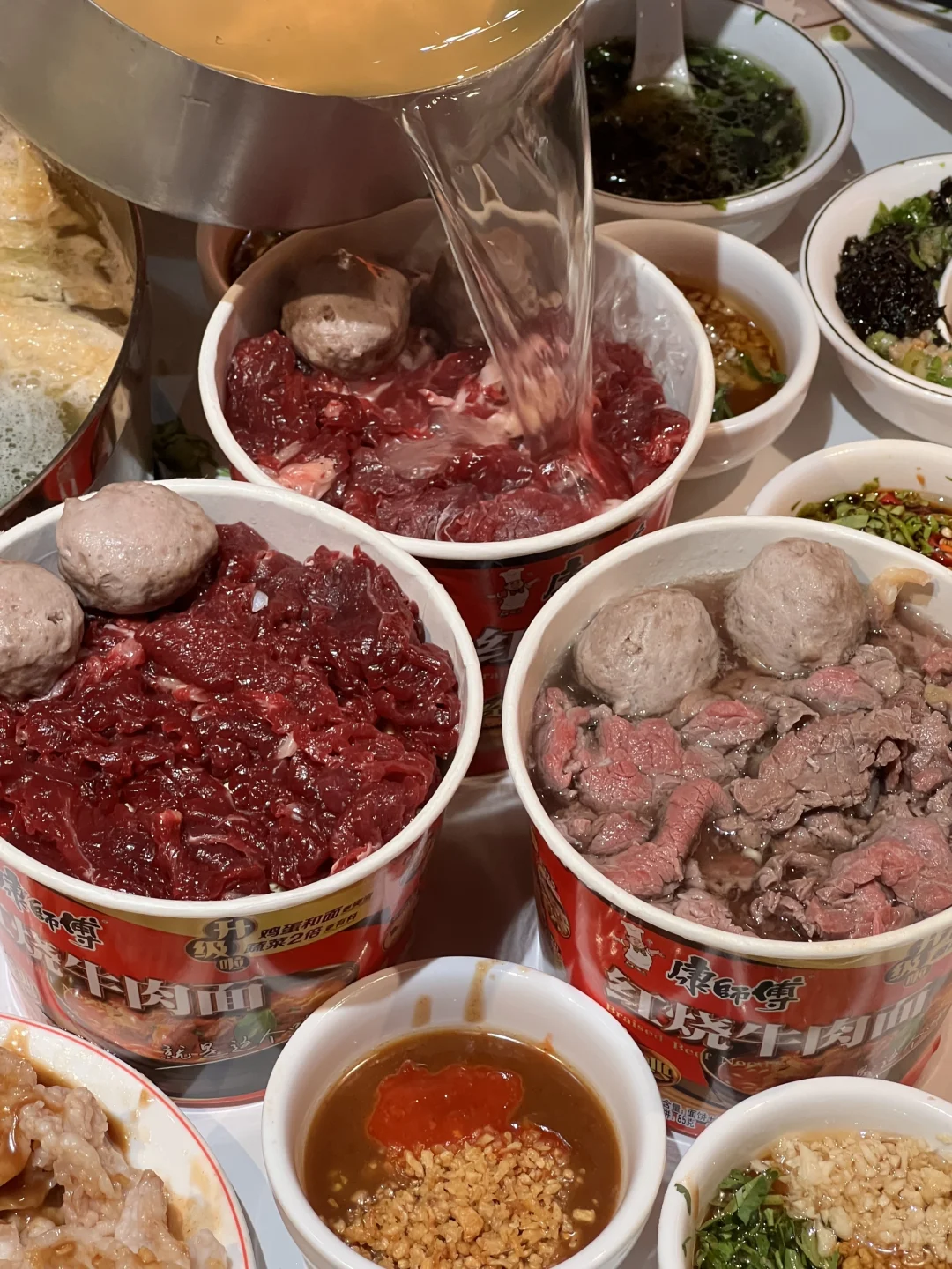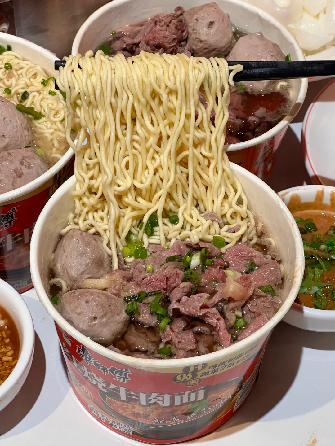 我们还diy了生烫牛肉方便面!又嫩又滑的牛肉浇上滚烫的高汤几秒就熟~热腾腾的牛肉面🥹会biu汁的牛肉丸 Q弹有嚼劲吼吼吃🤤