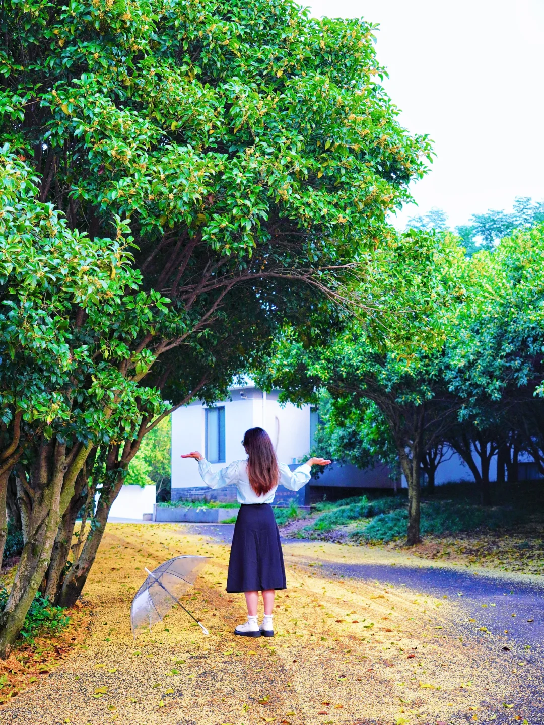 刚刷到滨江的桂花大道,就赶紧去拍了!📷诚不欺我,真的太美啦!🥰 就在白马湖附近的陈家村,雨后桂花散落满地,两边是绿色的茶园,风里还有隐约的桂花香,走在这里真的太浪漫啦!🧡 📍地址:陈家村SOHO创意园(陈家村188号)