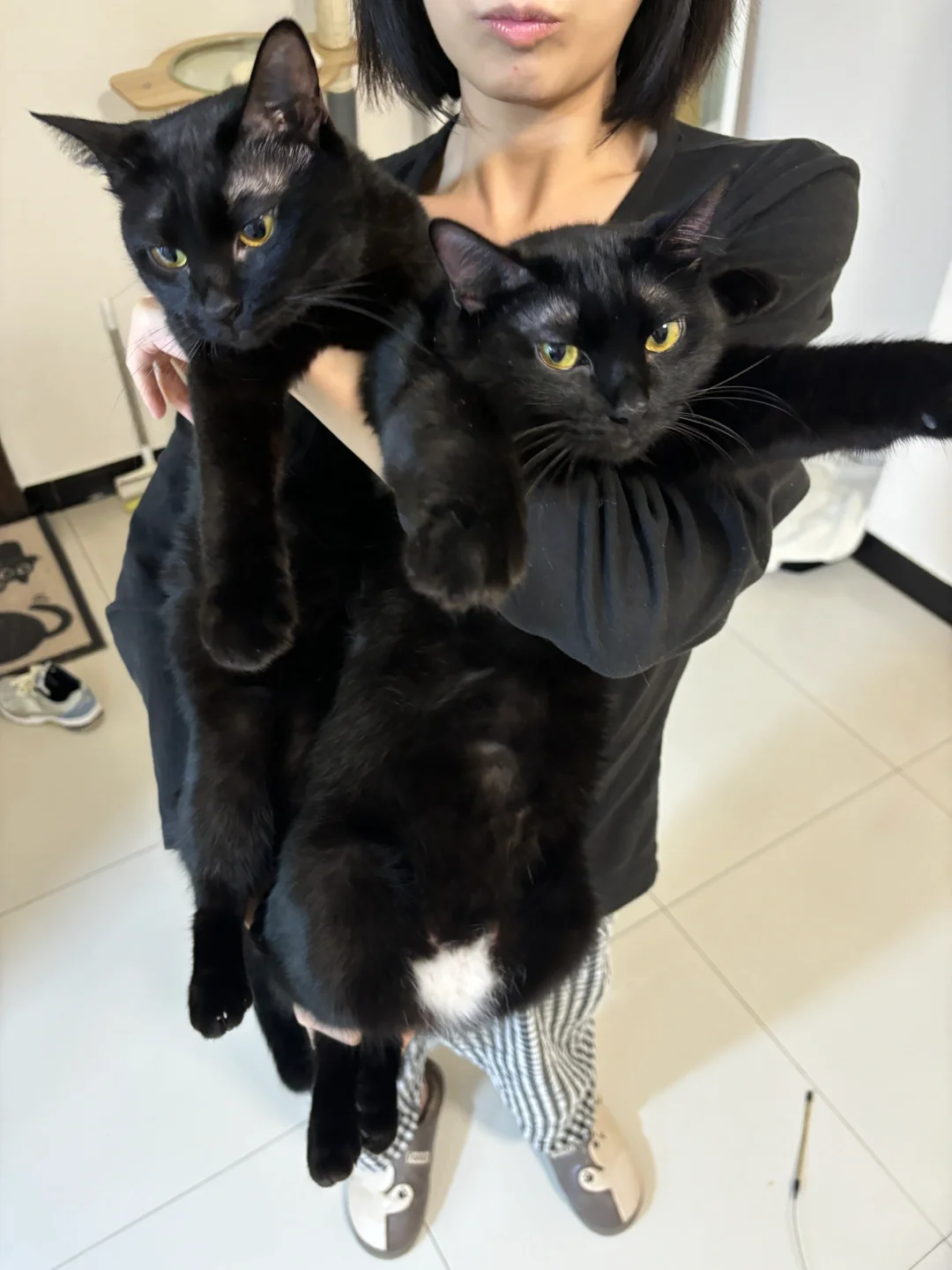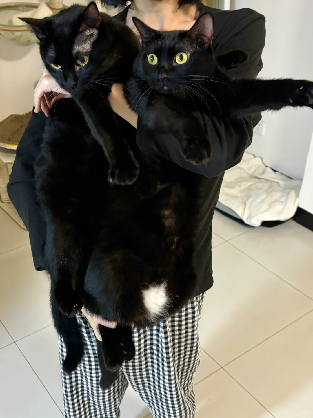 猫 奶牛猫 黑猫 现在一起饱他俩越来越费劲了[笑哭R]好吃力 越来越胖了