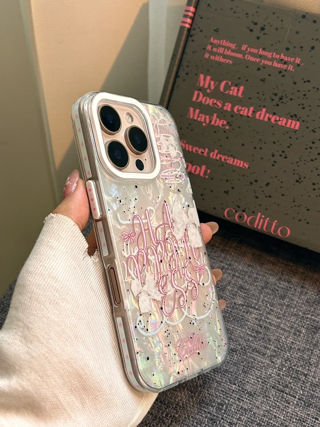 侧边按键还有可爱涂鸦设计的贝壳纹手机壳分享给你~ 搭配iphone16pro沙漠金好好看呀!你们喜欢吗?