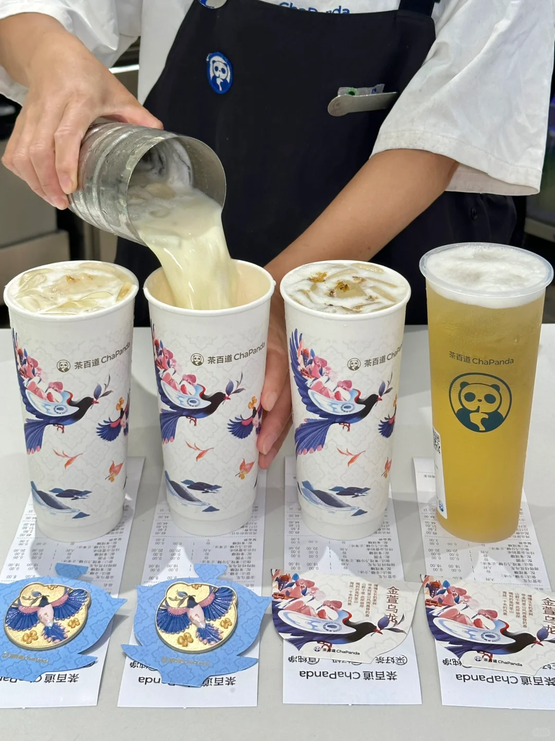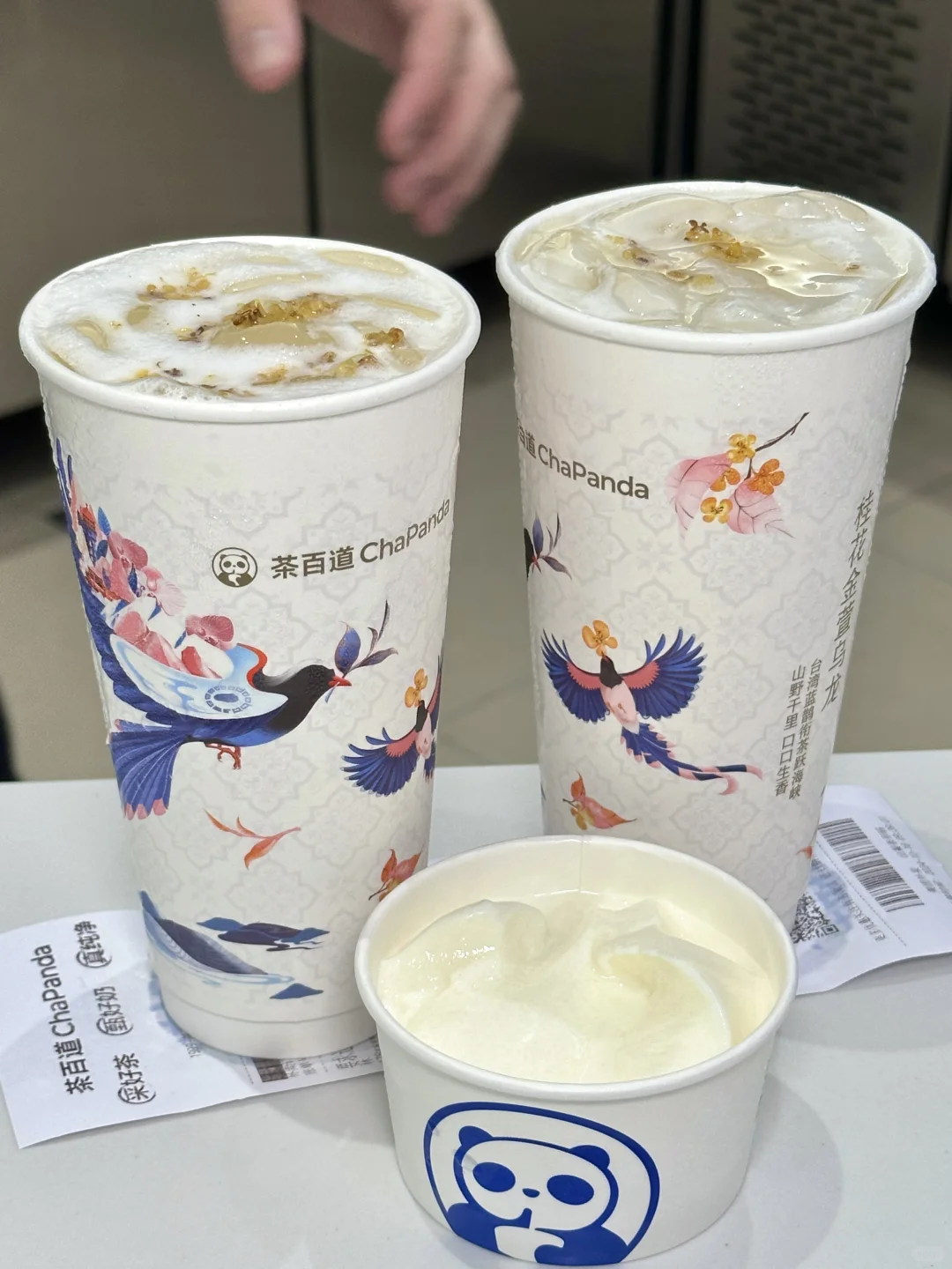 谁还没喝上茶百道新品金萱乌龙! 茶底自带奶香。。真的喝过一次就拒绝不了 还有新皮肤纸杯和徽章也太美啦!!以中国宝岛蓝鹊为灵感,这波设计尊嘟绝了!! · ✔️桂花金萱奶冻➕正常冰➕五分糖 又奶又醇!!金萱乌龙茶底本身的清甜奶香,融入鲜牛奶的双重奶味!加上桂花的馥郁花香,喝完满嘴都是桂花留香~底部还有Duangduang的奶冻!喝了还想喝[哭惹R][哭惹R] · ✔️椰椰桂花乌龙➕正常冰➕五分糖 做青工艺制成的金萱乌龙,带来清甜奶香,桂花的香气加持又添了一番风味!自带椰果,边喝边嚼口感贼丰富~ · ✔️金萱乌龙➕正常冰➕全糖 爱喝纯茶的闭眼冲这杯🥹😭😭金黄明亮的茶汤,入口微甜,回味还有淡淡奶香!冰冰凉凉的、炒鸡清爽解腻!! · 周边攻略: 1️⃣ 10月18日,喝桂花金萱奶冻get定制纸杯 2️⃣10月21日起,喝桂花金萱奶冻双大杯套餐get金萱乌龙徽章1份~(数量有限,先到先得)