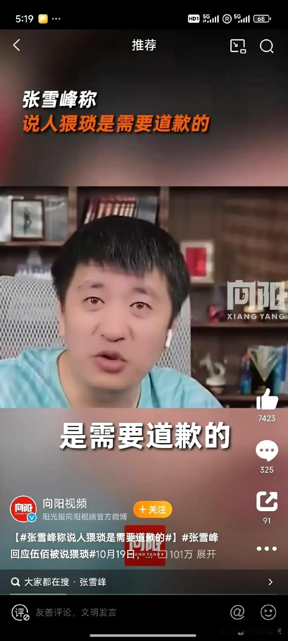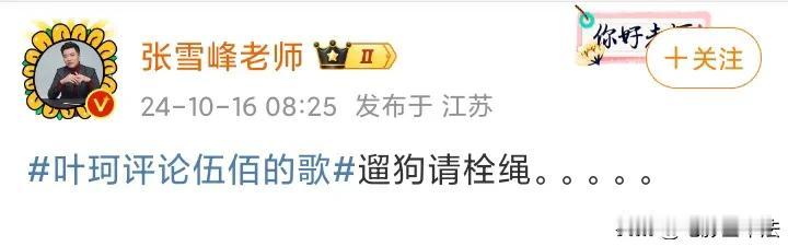张雪峰,被质疑了! 10月19日,考研名师张雪峰又一次丝滑的冲上了热搜,这次不是指导学生或家长,而是他在直播中回应为什么要内涵叶珂是🐶了。 首先他觉得说别人猥琐是需要道歉的,其次伍佰是他偶像,叶珂说别人他也就算了,但说他偶像就是不行。 张雪峰的态度得到了绝大多数网友的赞扬,都认为张雪峰是他们的互联网嘴替,都觉得张雪峰说出了他们的心声。 但是也有极少数网友认为,人在下意识开玩笑的时候最能够体现他内心的潜意识,比如张雪峰拿叶珂开玩笑,把她比喻成🐶,他就是单纯的针对叶珂,换成一个男性公众人物,张雪峰根本就不敢这么干。 这部分网友认为,感觉骂叶珂的无论男的女的,本质都是在妒忌叶通过培训班傍上了大款改变了命运,他们鄙视叶珂其实是因为妒忌,因为他们自己没办法或没条件放下身段去得到自己想要的。 其中有一个网友还说,“搞不懂有什么好骂的,男人为了名利不择手段的多了去了,不付出吃绝户的男的多了去了,也没见谁会追着审判。” 其实叶珂说伍佰的歌猥琐确实不妥,但是这和网友有什么关系呢,为什么有这么多人去骂叶珂,大量的人骂叶珂,真的是因为觉得叶珂做得不对吗?网上各类做出比叶珂过分的多的事的人多了,用发臭的肉给学生做菜的校长,侵犯14岁女学生的辅导班老师等等,他们有没有骂过?这些人的恶行,才是更值得唾骂的! 所以,为什么很多人骂叶珂这么起劲,热衷借此讽刺黄晓明,这个问题值得深思……