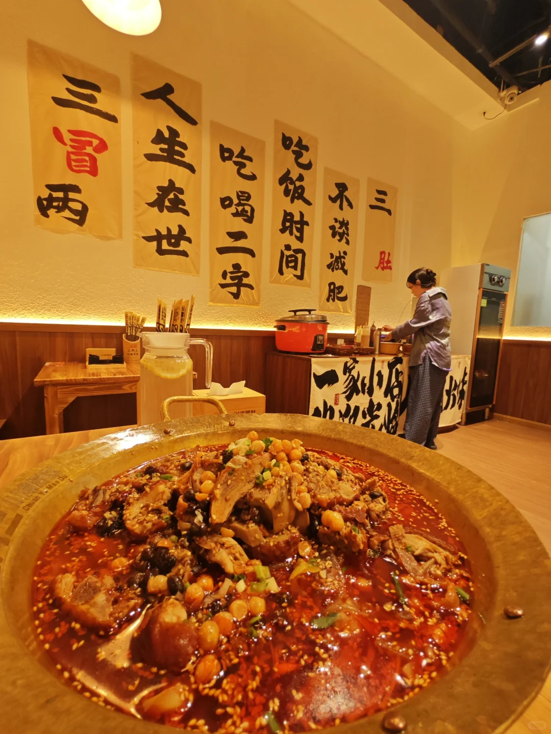 最近迷上了一家超火的川渝风味餐厅——三两三川渝毛肚,在常发广场五楼,交通便利,停车也特别方便!🚗🌟 一定要试一下他们的招牌「冒烤鸭」,鸭肉皮脆肉嫩,搭配特制的酱料和米饭上的黑芝麻,色香味俱全,每一口都是满满的幸福感!🍚💕 店内的装修风格也是亮点之一,挂着的传统灯笼营造出浓浓的中国风情,让人仿佛置身于古老的川渝小镇。🏮🌿 无论是朋友聚会还是家庭聚餐,这里都是个不错的选择。下次来南京,记得打卡这家超有特色的餐厅哦!🎉💖