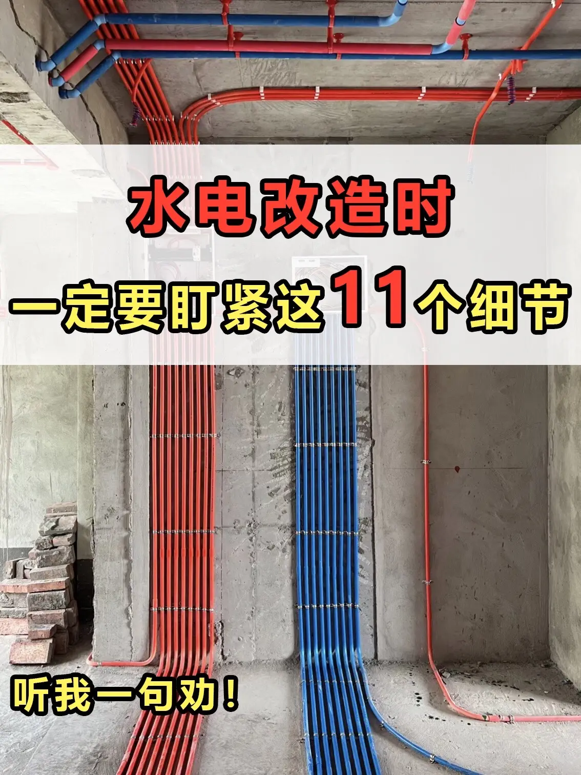 水电改造时一定要盯紧这11个细节!装修无论是全包还是半包,水电改造再忙也一定要亲自来监工!否则做完了才发现踩坑,返工浪费钱,还耽误工期!一定要记住这11个细节!建议收藏!