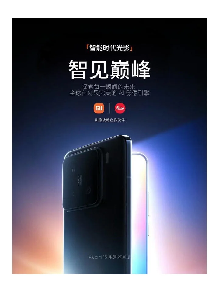 小米15 Pro后置相机将配备5000万像素超大底主摄、5000万像素超广角以及5000万像素潜望长焦镜头,支持最新AI大模型超分算法。小米15标准版的影像系统也将进行升级,但可能不会配备潜望式长焦镜头。