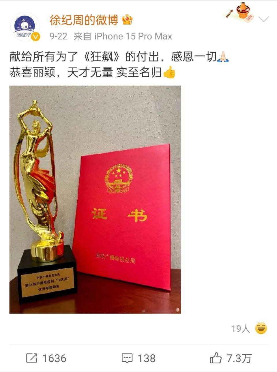 赵丽颖二封金鹰视后,导演徐纪周鼓掌好用力笑得好开心,“天才且无量”这句评价的含金
